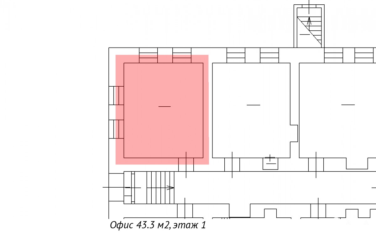 На 1-м этаже здания на ул. Комсомола, дом 1-3 сдаётся в аренду офис общей площадью 43, 3 кв. м.