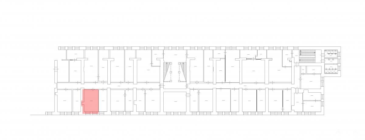 Помещение площадью 43.3 кв. м расположено на 3-м этаже административного здания.
