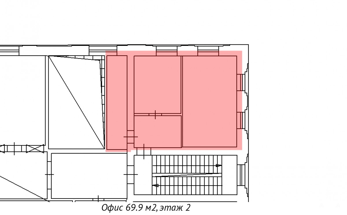 Небольшой офисный блок площадью 69.9 кв. м сдаётся в аренду у станции метро "Площадь Ленина".