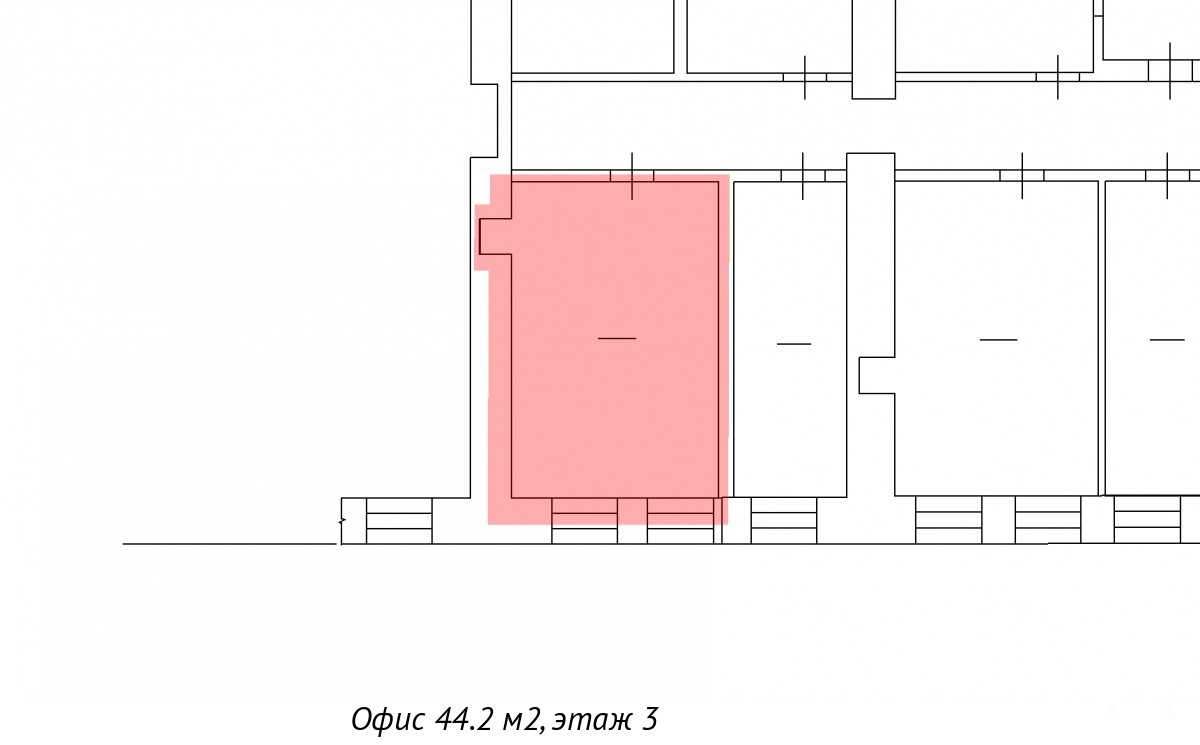 Площадь помещения составляет 44.2 кв. м, вход в здание с улицы Комсомола, через проходную.