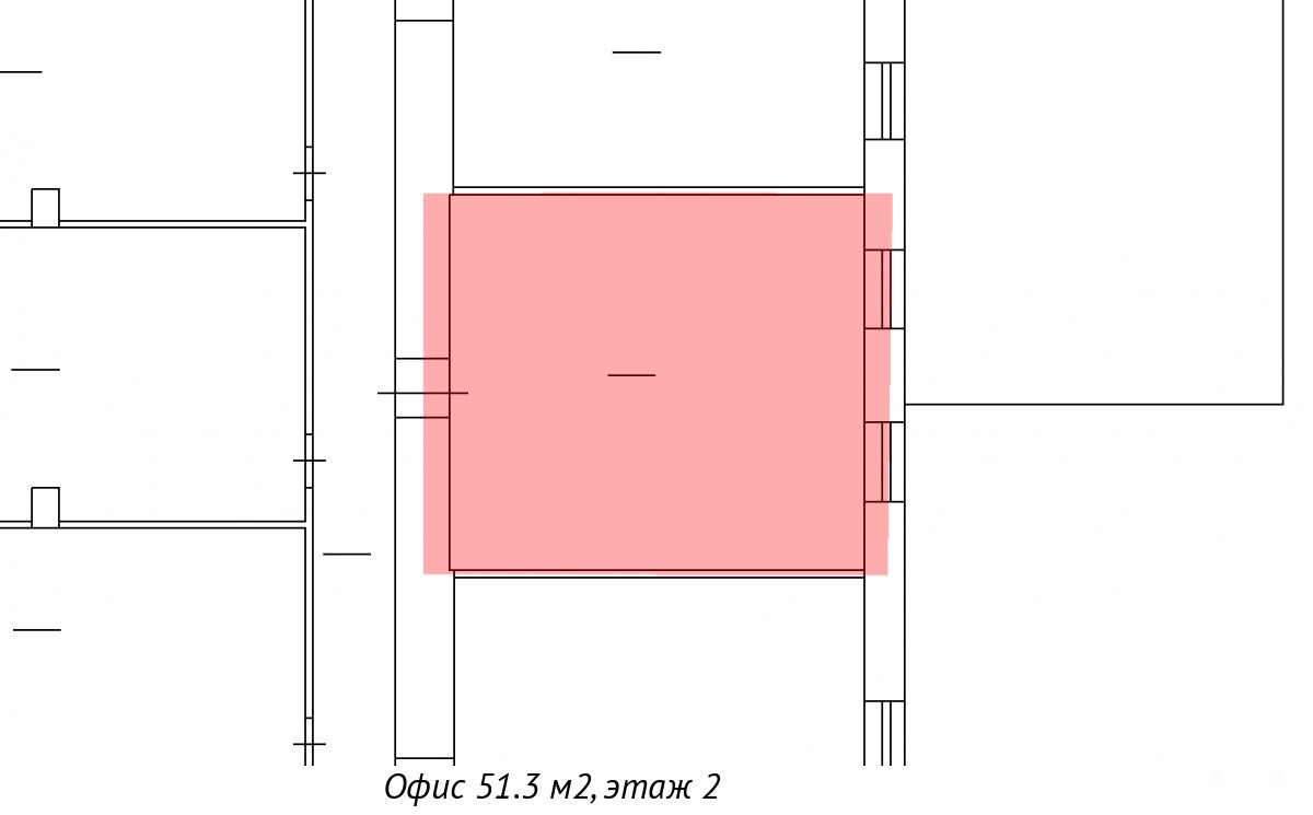 ПЛОЩАДЬ помещения составляет 51, 3 кв. м, кабинетная планировка.
