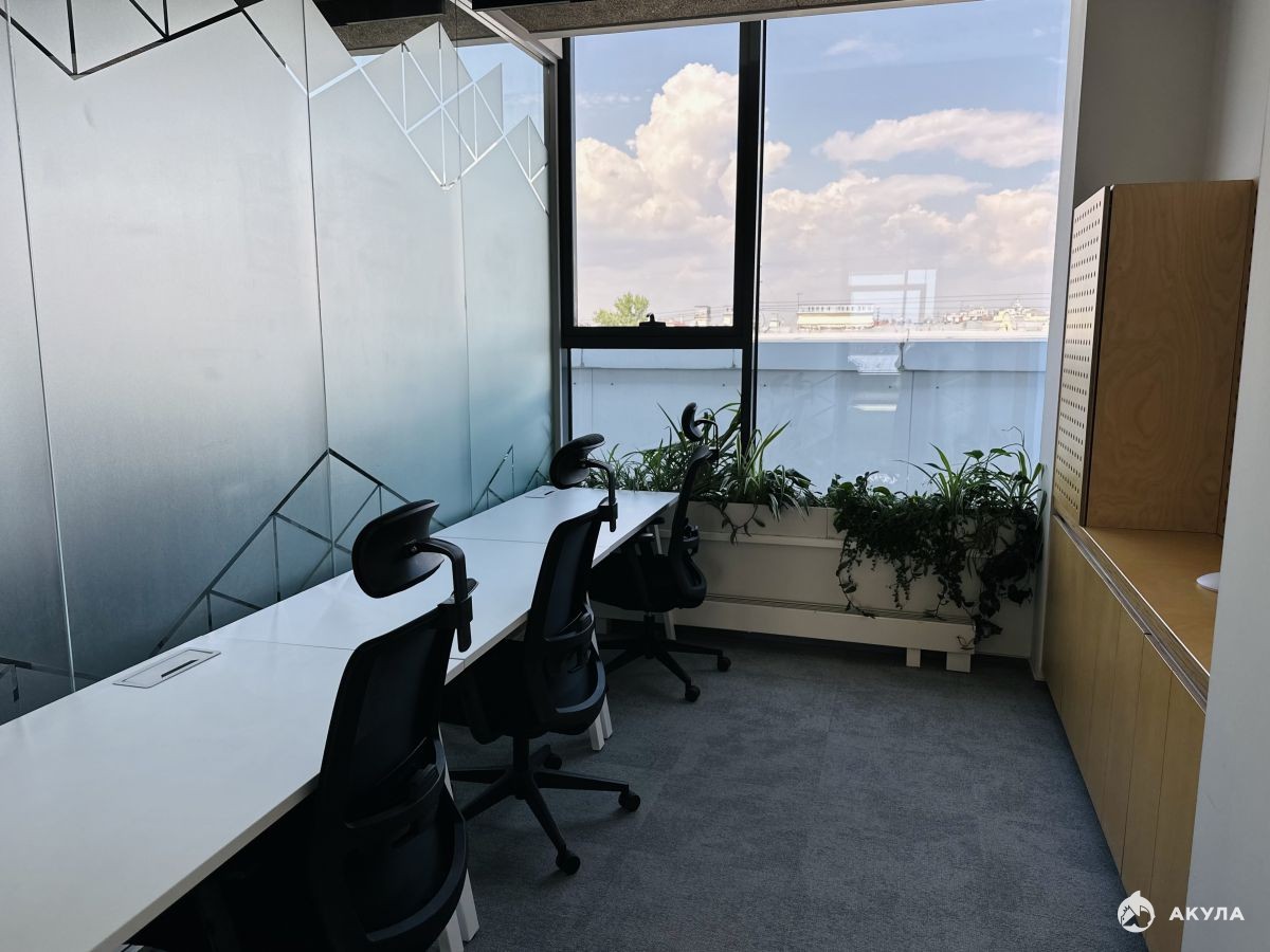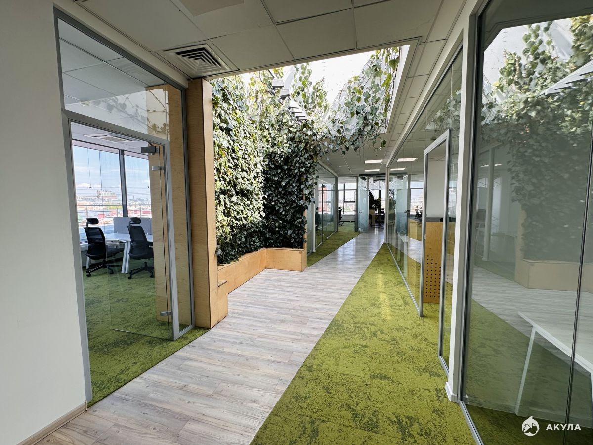 • Зону smart-офисов разной площади. Зонирование пространства выполнено стеклянными перегородками.