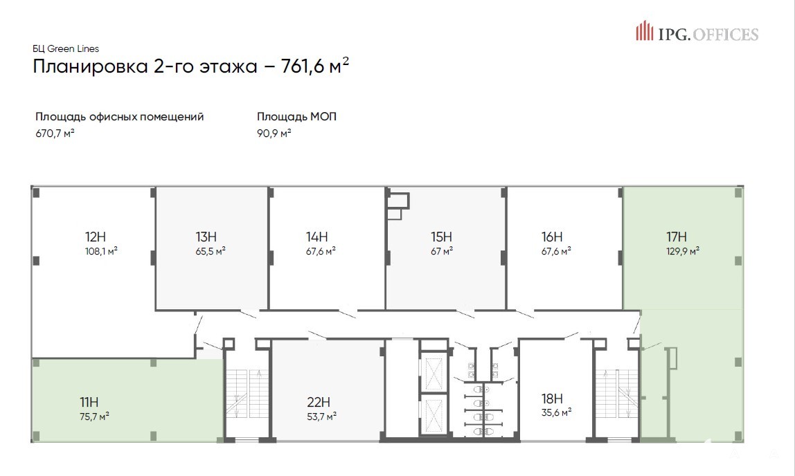 • Есть этажи с кабинетной и открытой планировкой на выбор