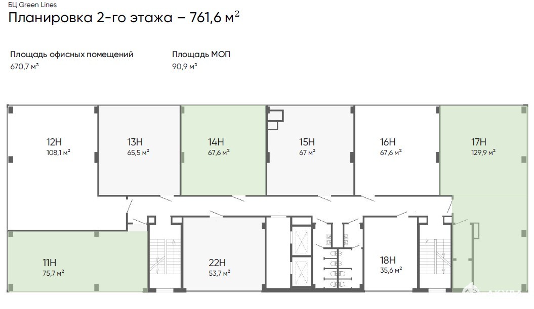 • Есть этажи с кабинетной и открытой планировкой на выбор