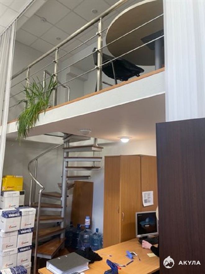 На втором этаже располагаются кабинет управляющего, 5 кабинетов сотрудников, 3 переговорные, просторныи? зал, серверная, гардеробная, коридор, техническое помещение, комната отдыха, санузел и лестница, ведущая на антресоли второго этажа.