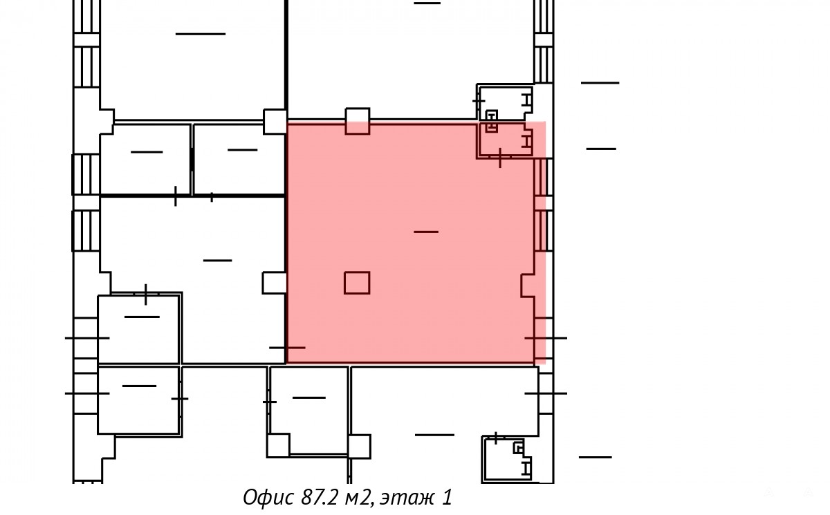 Собственник предлагает в аренду офисный блок площадью 87.2 кв. м.