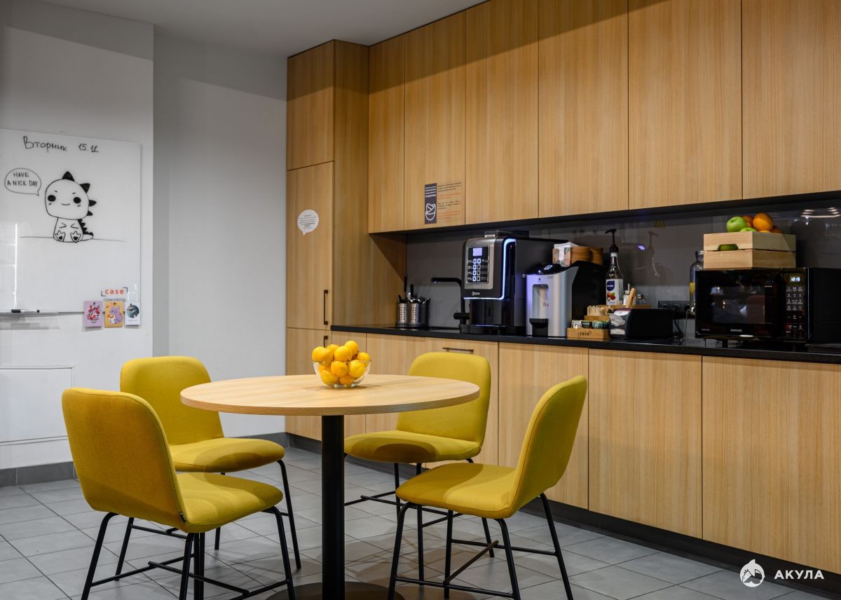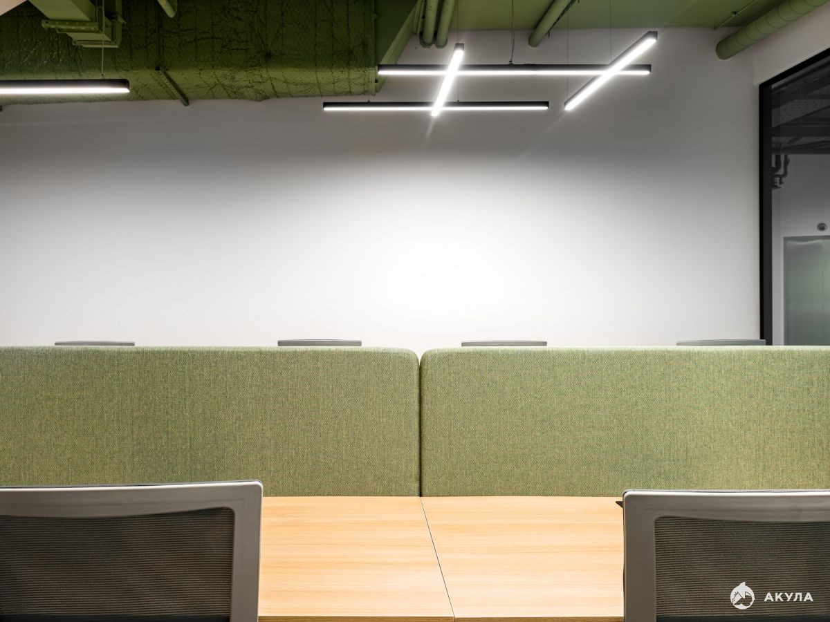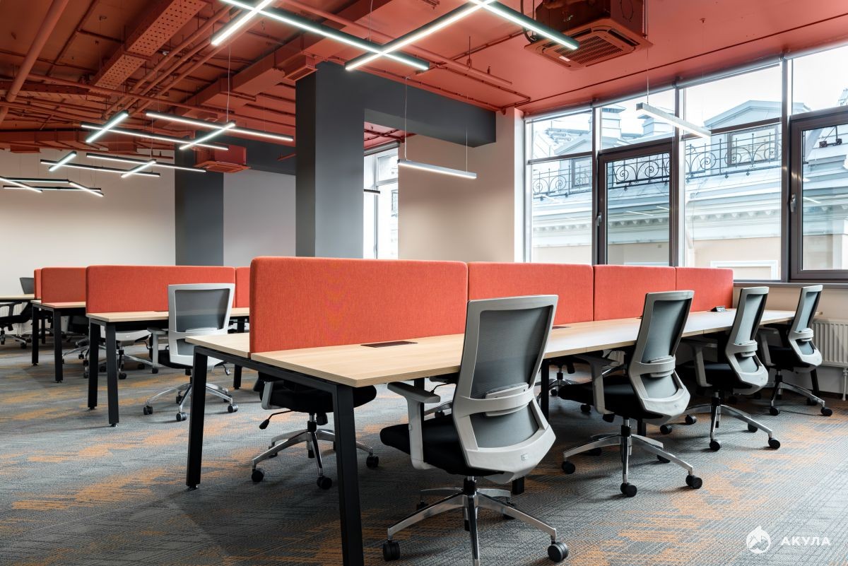 - Полное мебельное оснащение - рабочие столы с электро-подключением и СКС, эргономичные рабочие кресла,