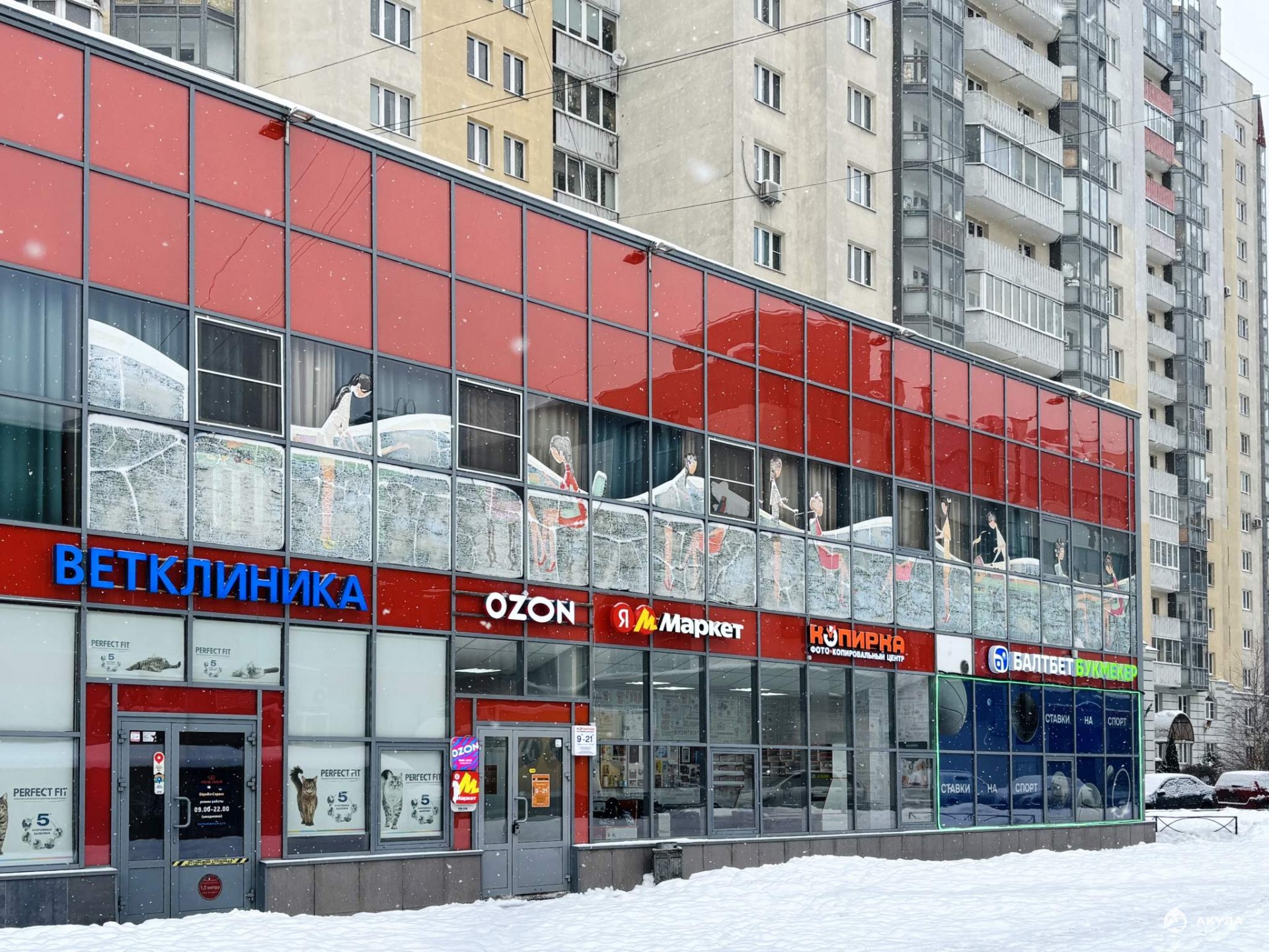 + ТЦ расположен в непосредственной близости от перекрестка пр. Косыгина и Индустриального пр.;
