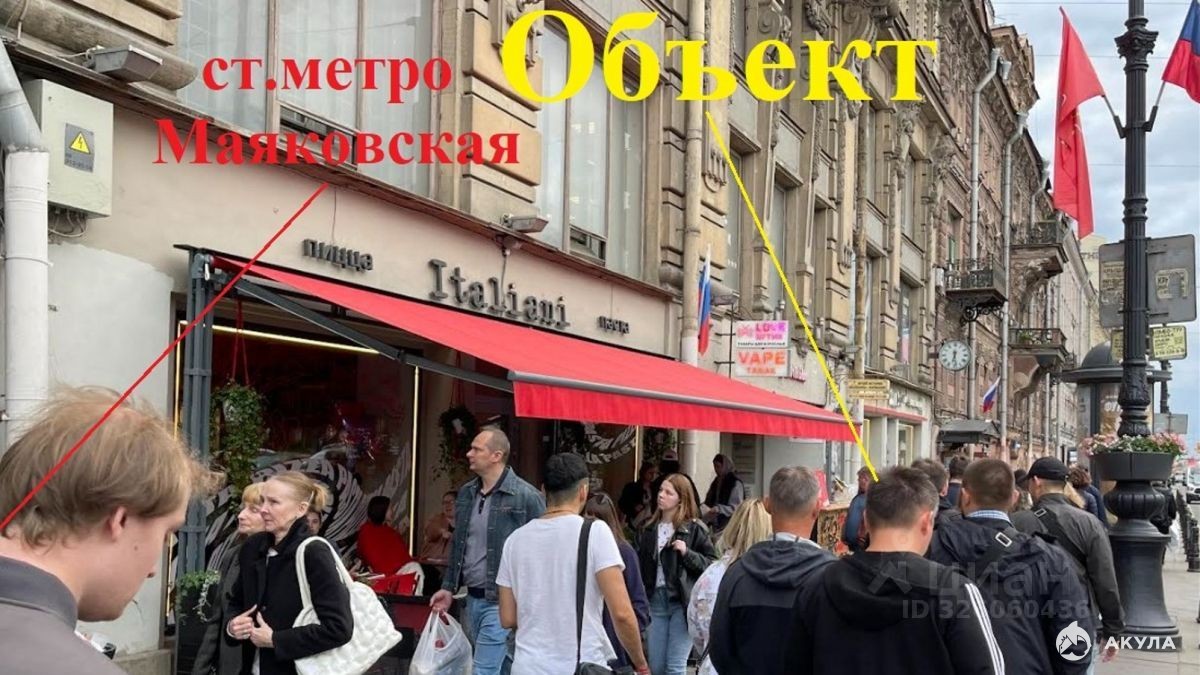 Арт. 91695653. Сдается помещение в туристической локации площадью 332м² на первой линии, на входе станции метро "Маяковская". Уникальное предложение в сердце города с максимальным пешеходным и автомобильным трафиком. Помещение полностью подготовлено для ресторанного бизнеса. Два отдельных входа (с парадного фасада и со двора) обеспечивают удобную логистику. Огромные витринные окна на первой линии создают бесценный рекламный эффект и привлекают внимание тысяч прохожих ежедневно. Ранее здесь располагался популярный ресторан. Помещение обладает отличными характеристиками: высота потолков 3, 7 м, есть свеча-вытяжка. Локация в престижном Центральном районе рядом с точками притяжения: - Станция метро Маяковская (у входа) - Основные туристические маршруты - Парадные исторические улицы Идеально подойдет для: ресторана, демократичного бистро, кофейни премиум-класса. Основные характеристики: - Общая площадь: 332 м² (1-й этаж 206м² + подвал 126м²). - Этаж: 1-й (первая линия) - Высота потолков: 3, 7 м. - Входы: 2 отдельных входа (с фасада и со двора). - Особенности: летняя терраса, огромные витринные окна. - Коммуникации: все центральные, электрическая мощность 60кВт. - Состояние: готовое помещение под ресторан, ранее был ресторан Мидийное место. - Трафик: интенсивнейший пешеходный и автомобильный, туристическая локация. Звоните прямо сейчас для подробной консультации и организации просмотра! Точки притяжения: высокий пешеходный трафик, исторические достопримечательности города Подходящий тип арендатора: Аудиотехника / Видеотехника, Банки, Бытовая техника, Сувениры Ближайшие станции метро: Маяковская Помещение подойдет для: Свободное назначение.