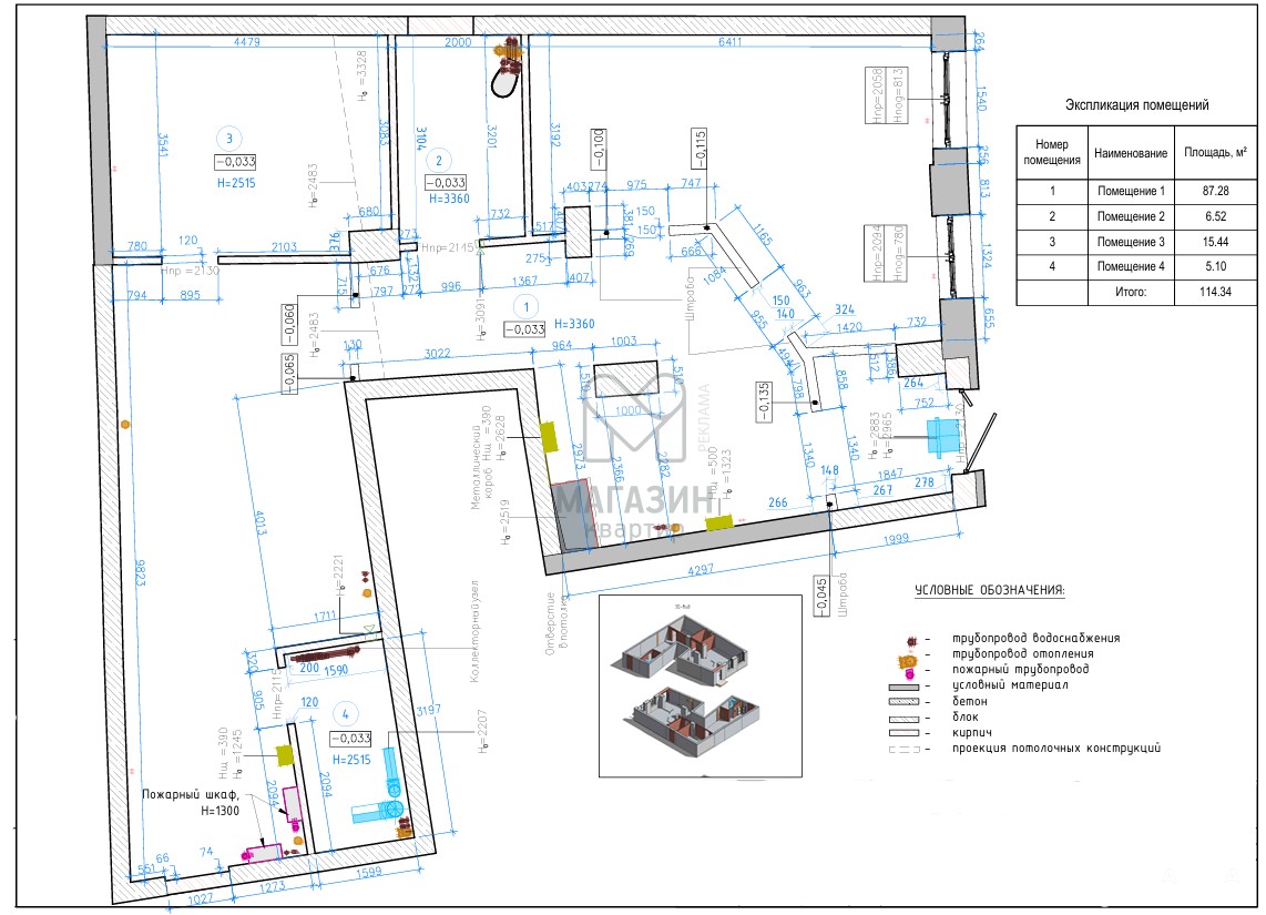 Площадь: 114 м² (свободная планировка, можно зонировать под любой формат)