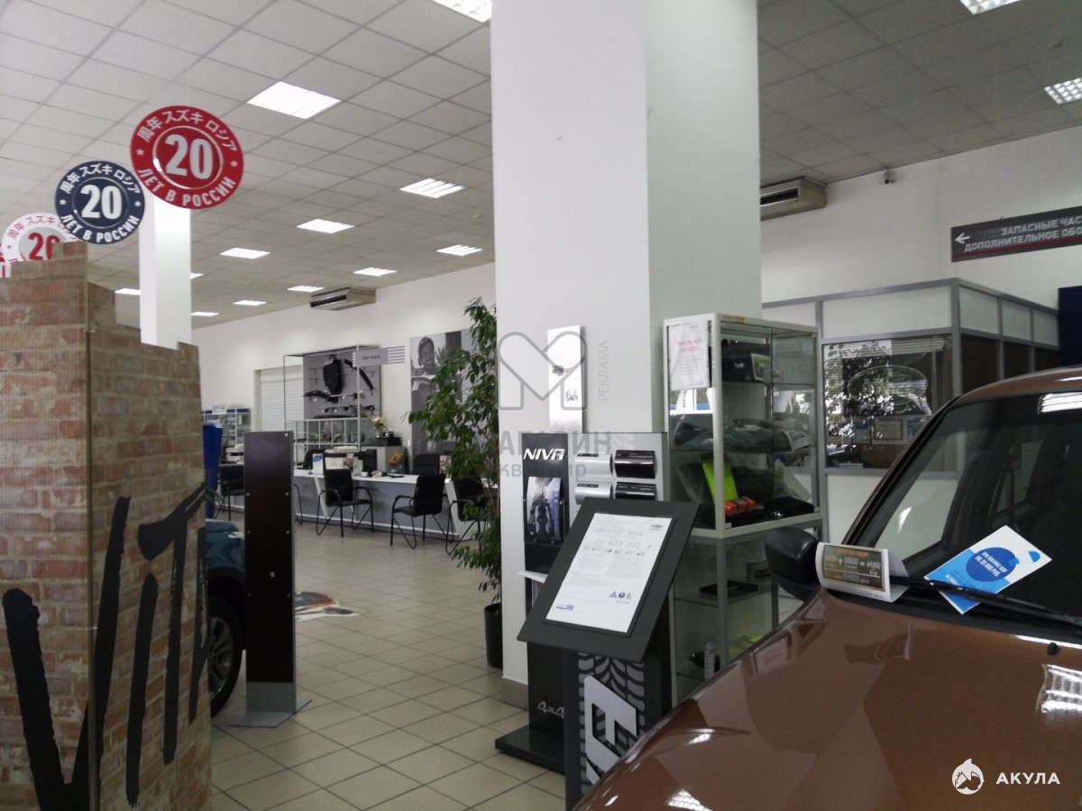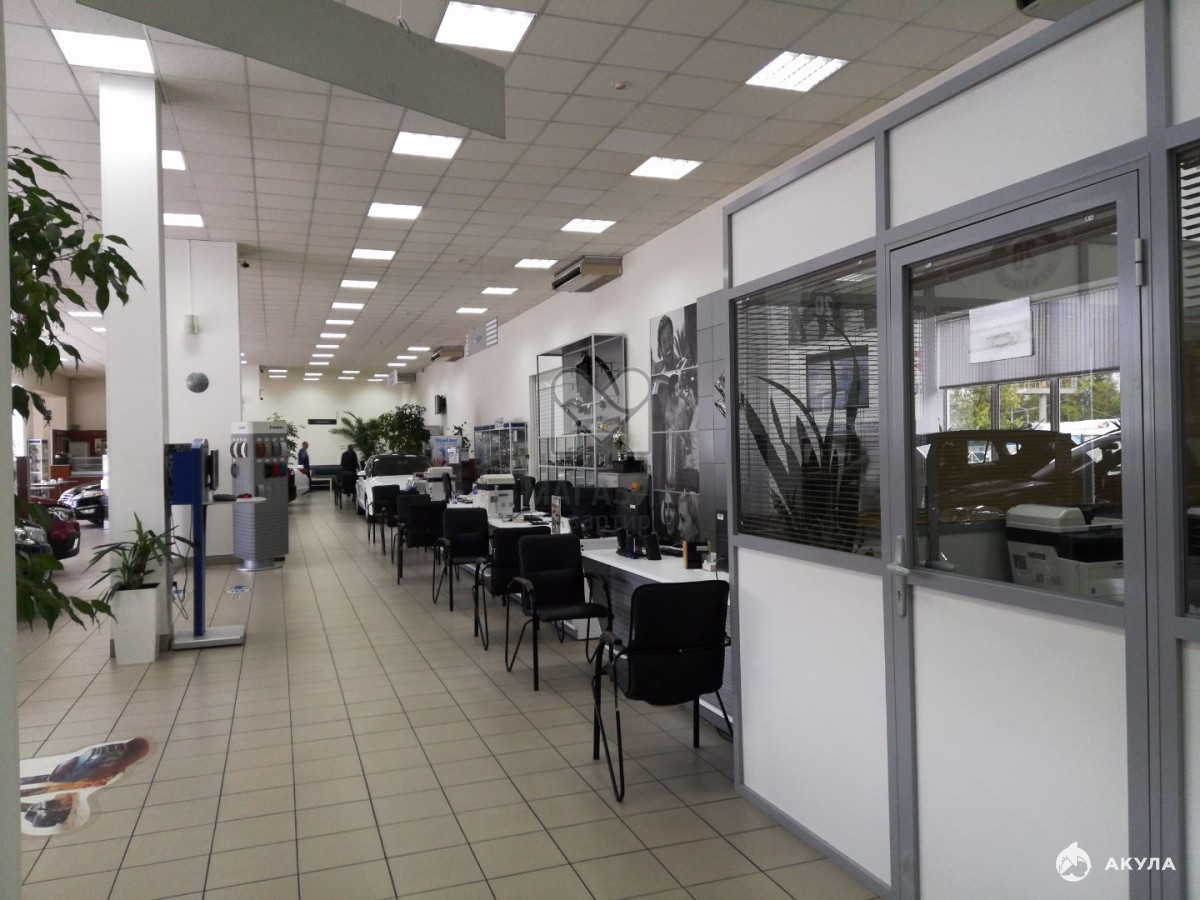 - Шоу-рум правильной прямоугольной формы ( 60*12), имеет 2 отдельных входа с улицы и 2 въезда, большие витринные окна " в пол", подъемно-секционные ворота для въезда автомобилей, центральное кондиционирование, видеонаблюдение, высота потолка в шоу-руме - 5 м. Вмещает порядка 30 автомобилей.