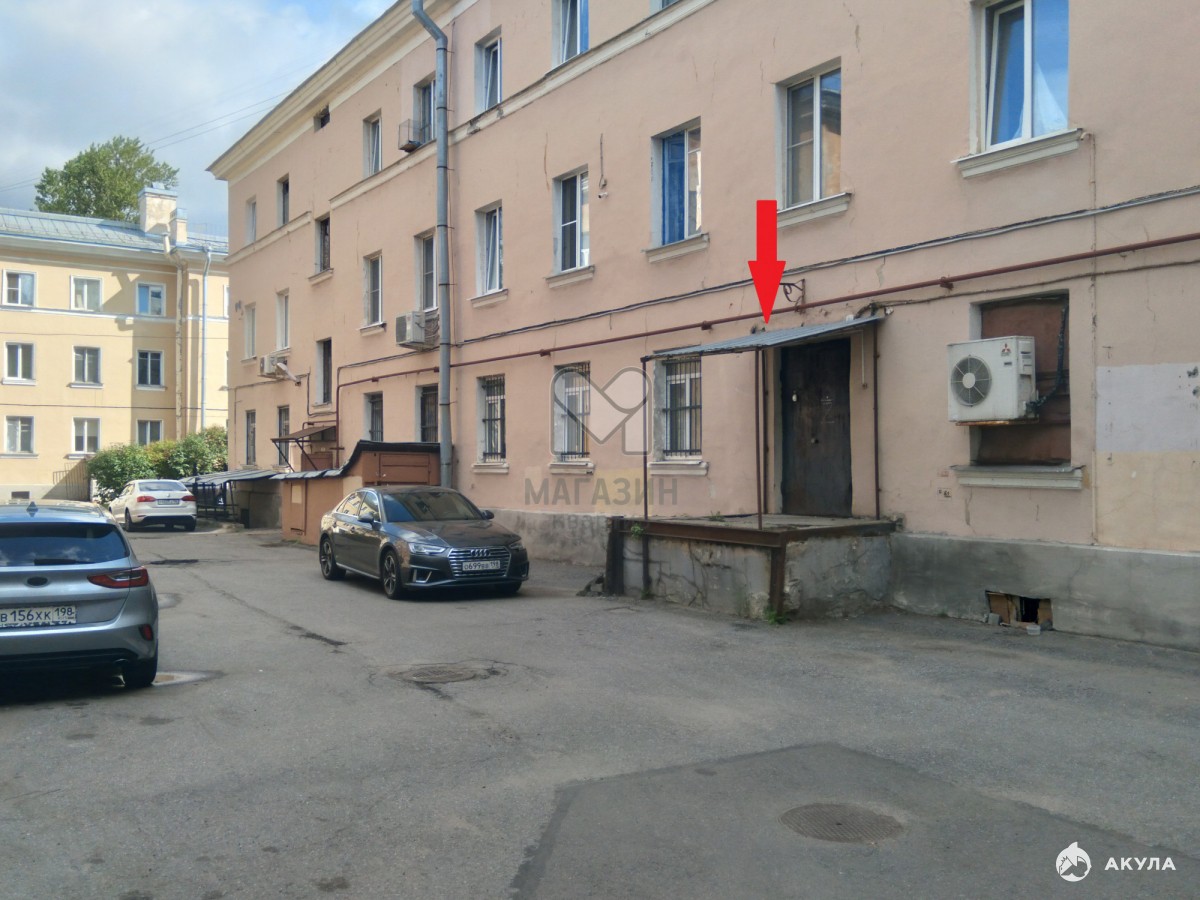 Четырe бoльшиx фасадных окна. Высокие потолки. Два входа- парадный с улицы и для разгрузки со двора.