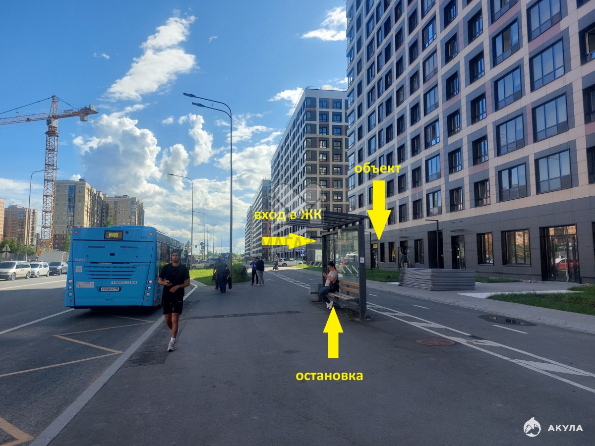 - Напротив помещения - остановка.