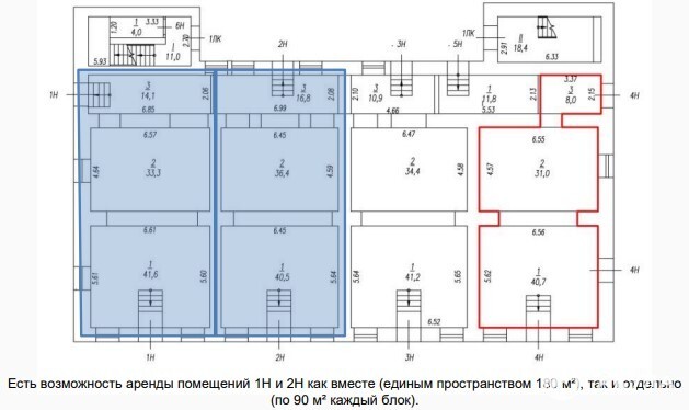 • Есть возможность аренды помещений 1Н и 2Н как вместе