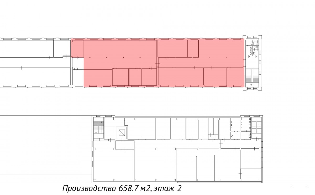 Второй этаж здания на ул. Комсомола, д. 1-3.