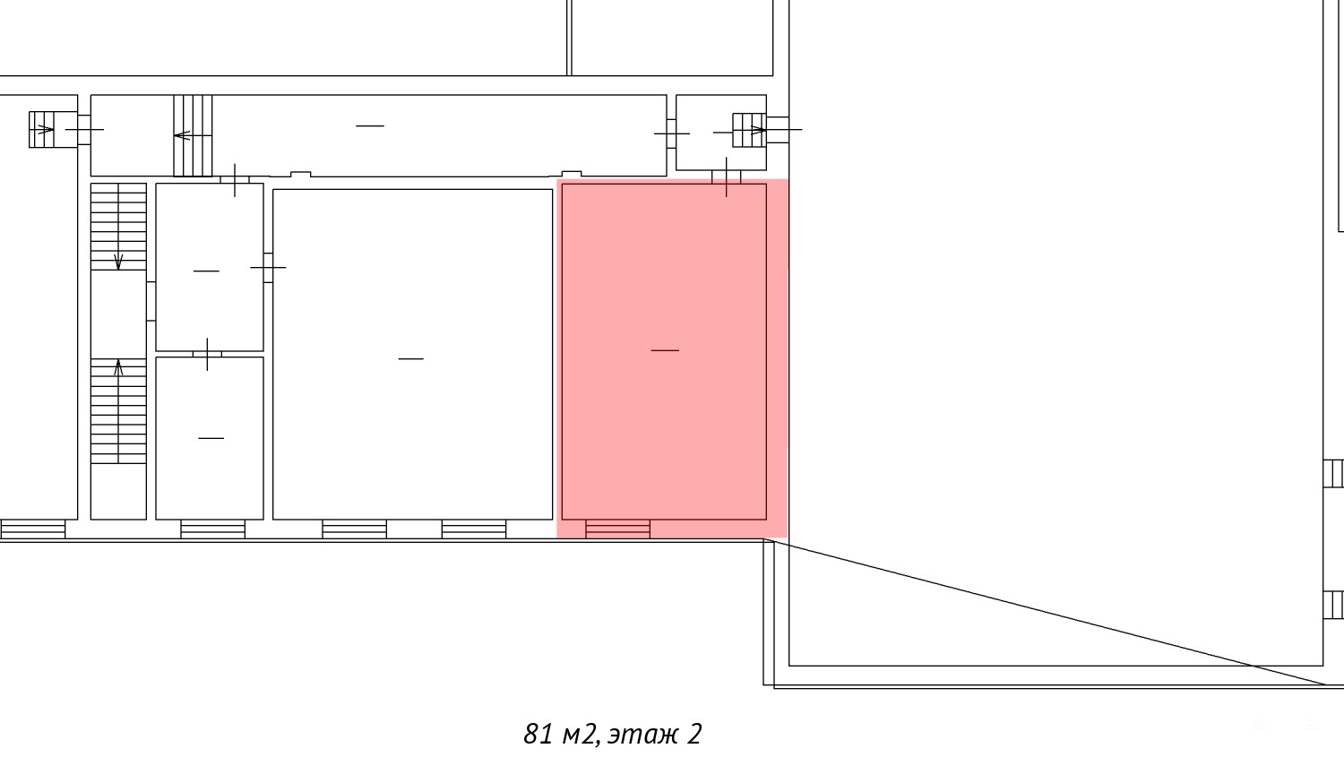 Общая площадь помещения составляет 81, 1 кв. м, 2-й этаж здания.