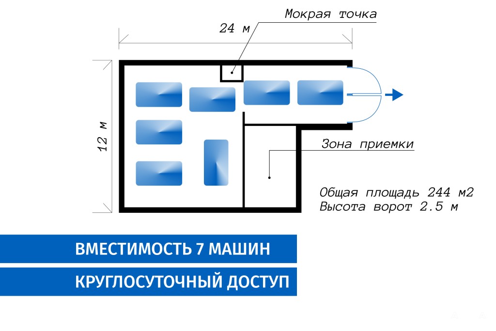 · Площадь приемки: 30 м2.