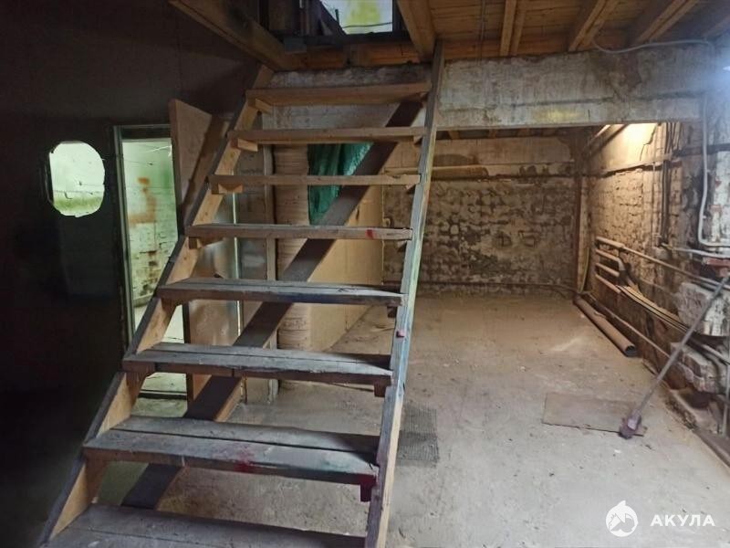 Высота потолка 8.84 м, бетонный пол, металлическая дверь 1.2 м*2.1 м.