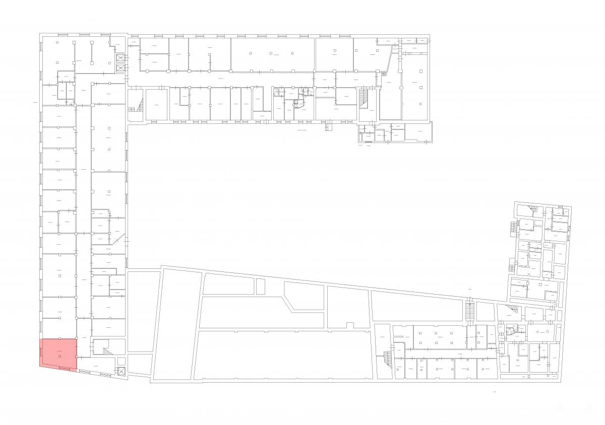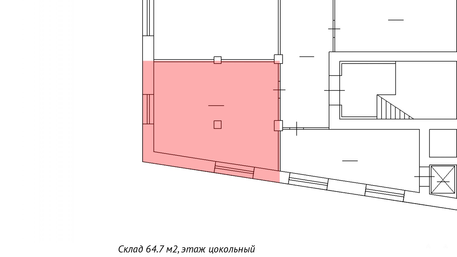 Помещение площадью 64.7 кв. м расположено на цокольном этаже здания.