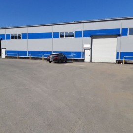 Охраняемая территория складского комплекса Общая площадь здания – 9 343 м2 Два собственных въезда с прилегающих улиц Асфальтированная территория Технические характеристики: Рабочая высота потолка: 9, 8-11 м Ровный бетонный с антипылевым покрытием Электрическая мощность: 350...
