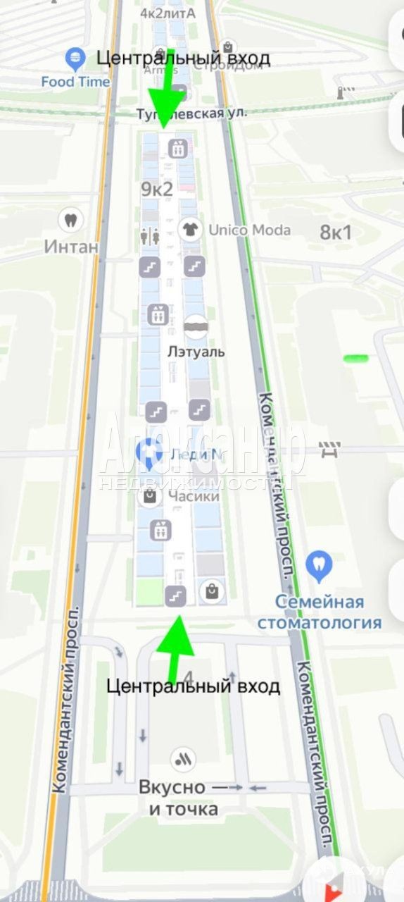 Вход в помещение с центрального входа со стороны Комендантской пл. (За вкусно и точка)