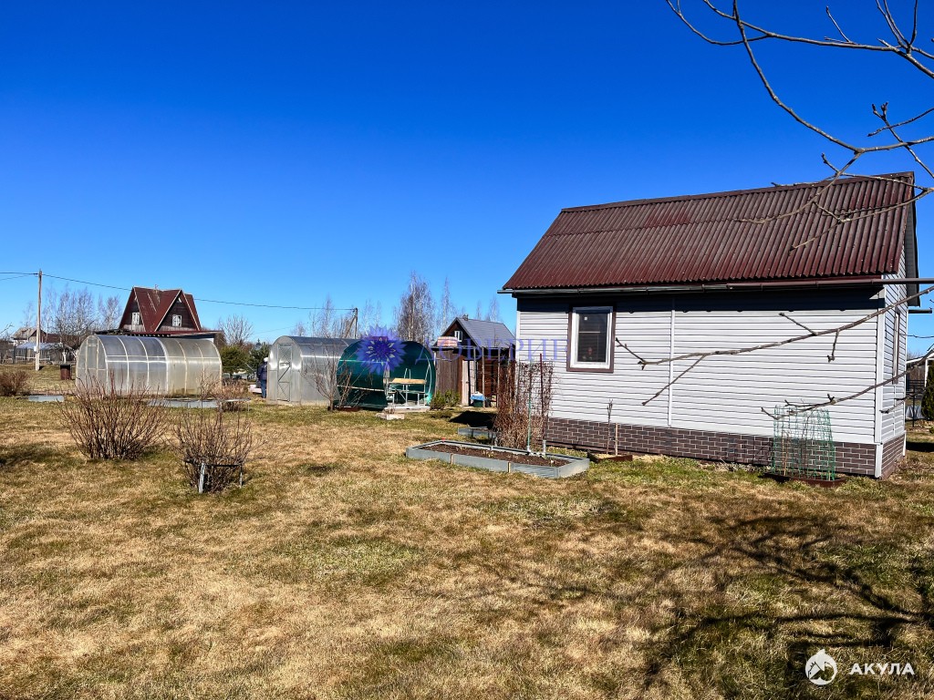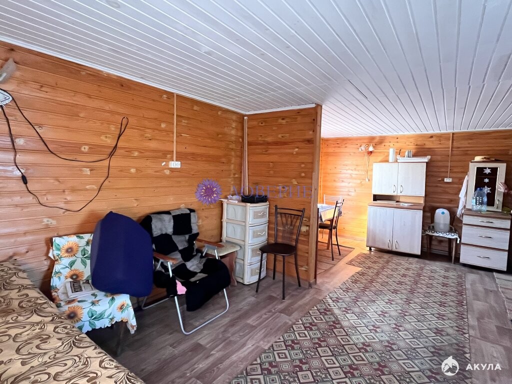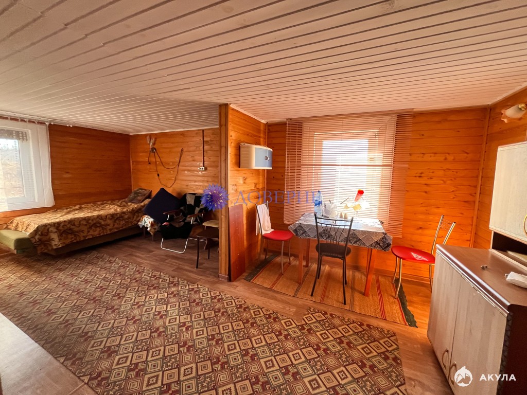 На участке расположен летний домик на сваях — комната-студия площадью 27 м², зарегистрирован официально. Электричество в доме пока не подключено, но разводка сделана, а электрический столб находится прямо на границе участка.