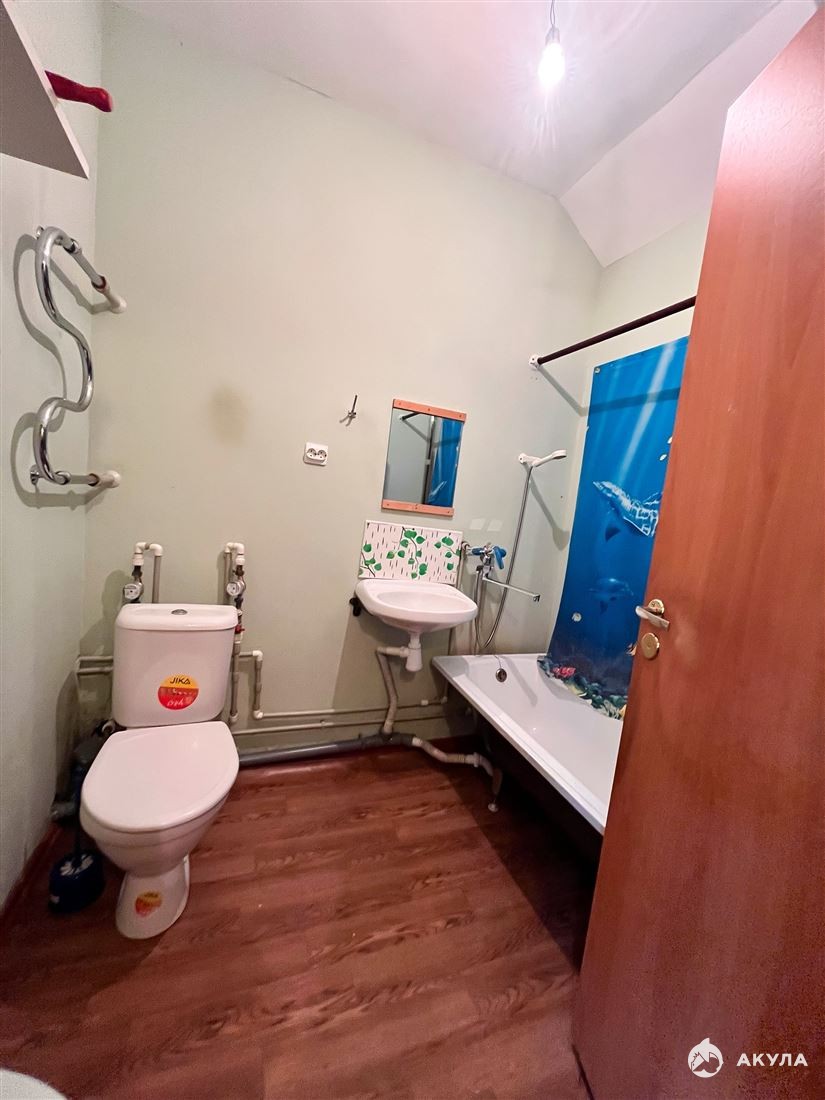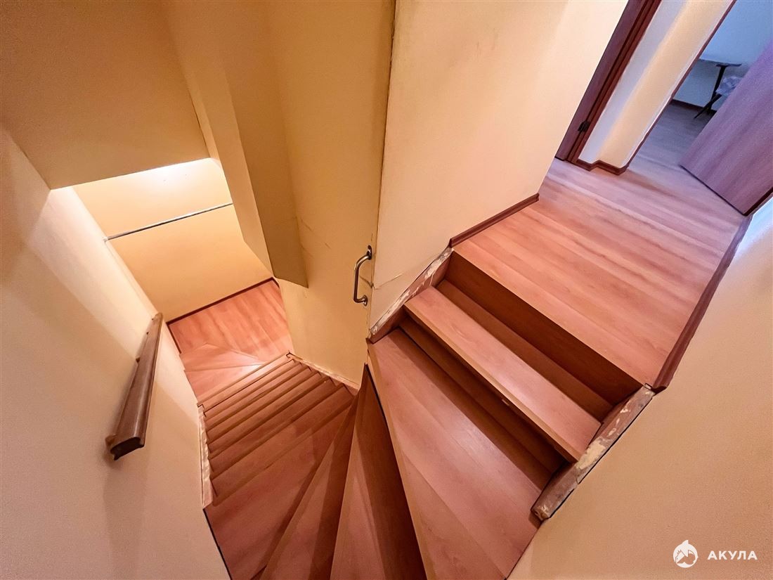 Винтовая лестница ведет на второй уровень, где расположены две уютные комнаты площадью 12, 3 м² и 6, 2 м². Эти компактные комнаты идеально подойдут для спальни, кабинета или детской.