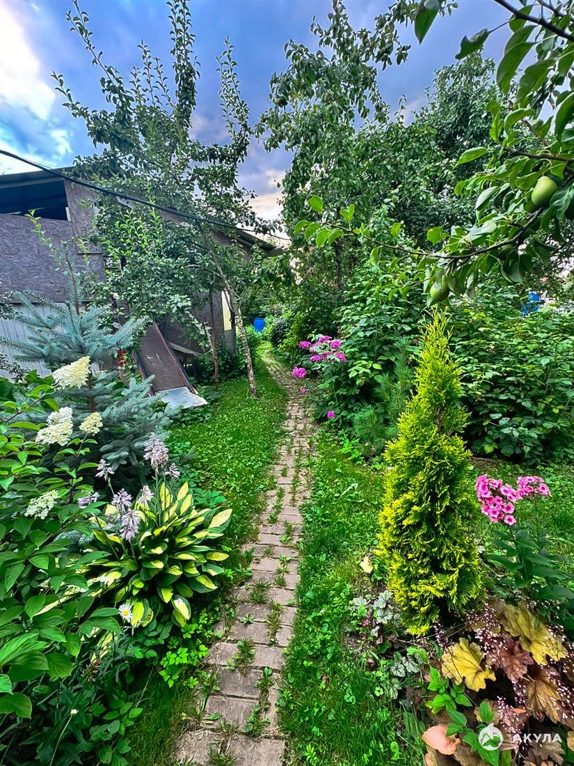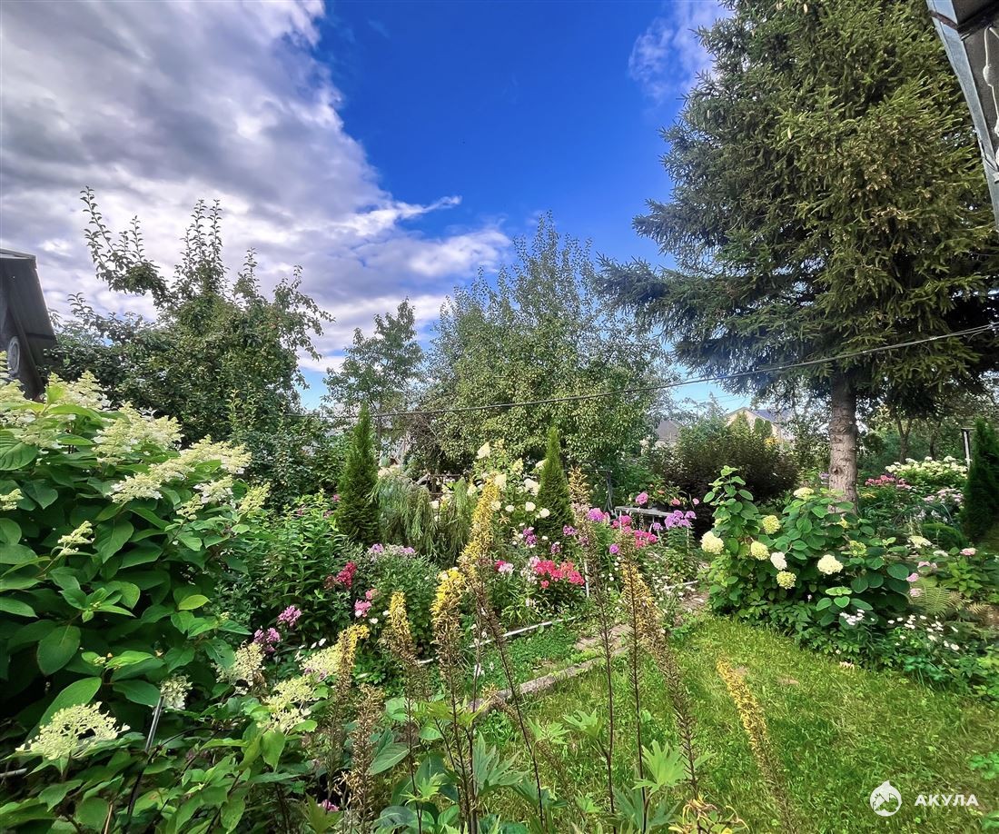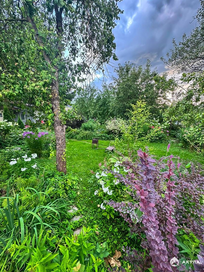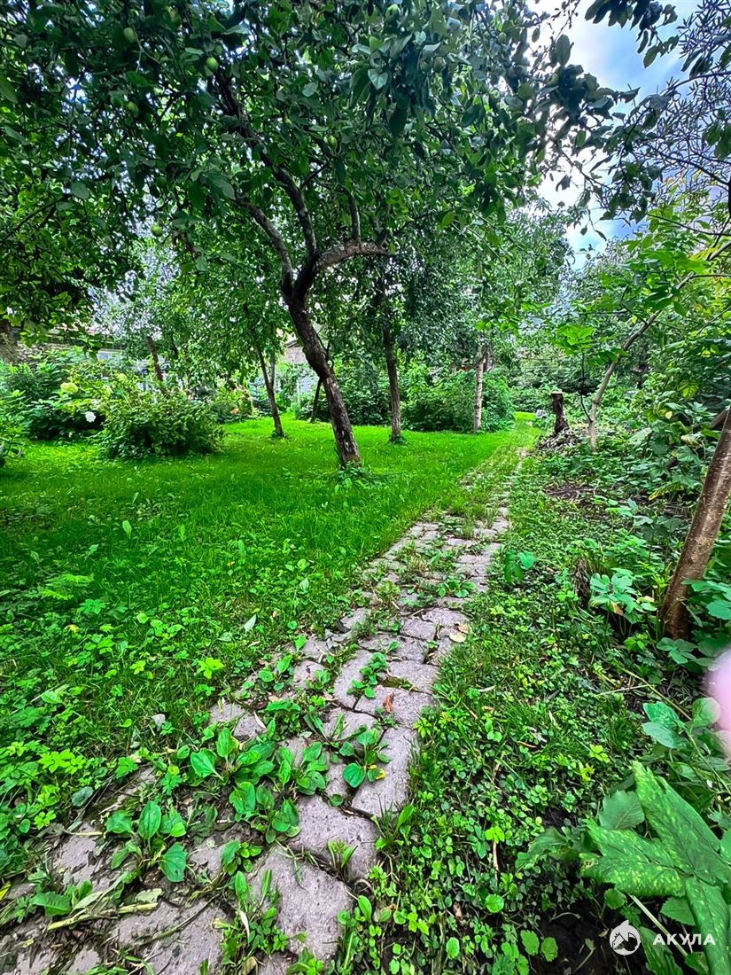Участок высокий, сухой , окружен зеленью , на нем расположен прекрасный фруктовый сад , много плодовых кустарников и декоративных растений .