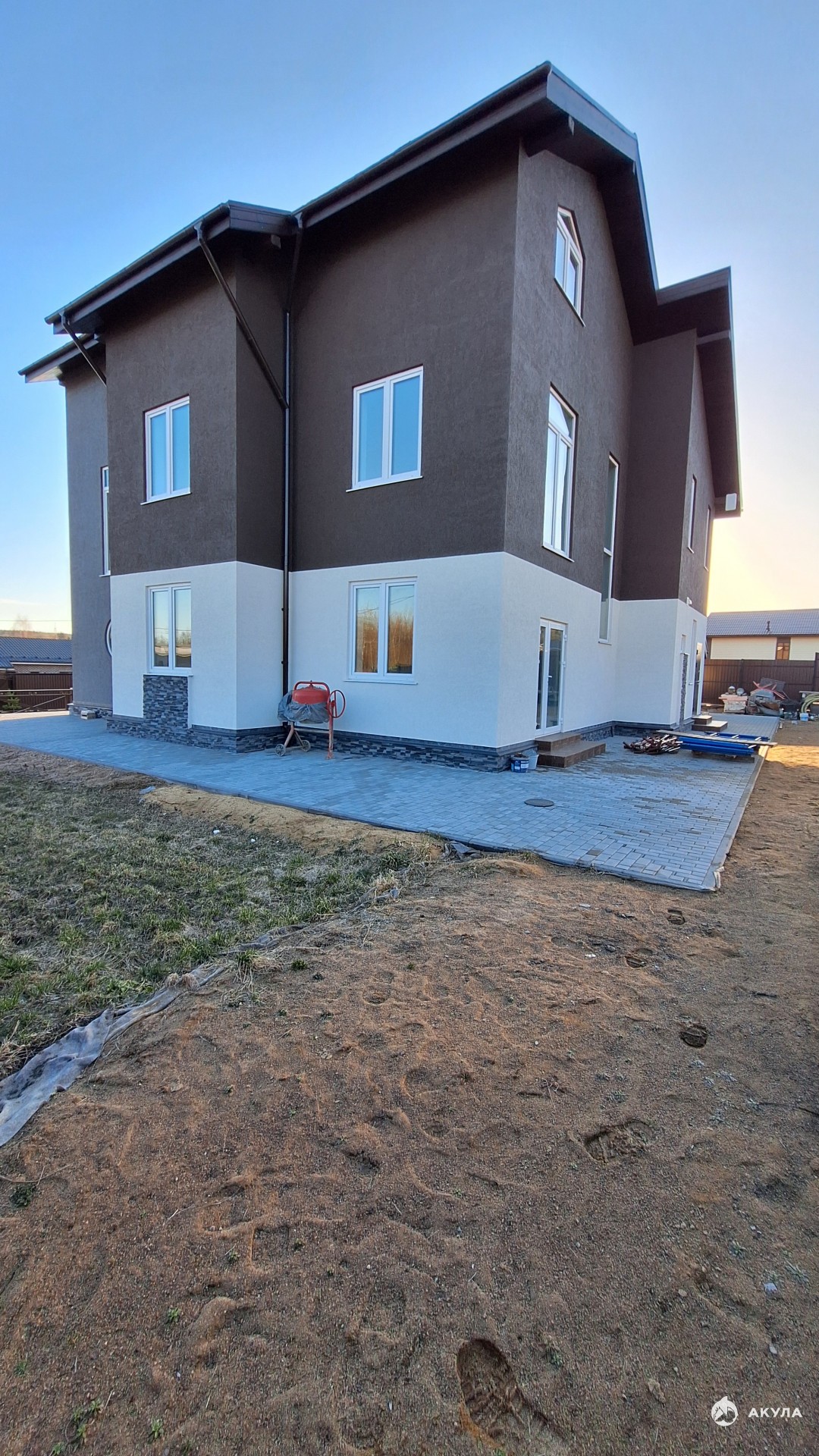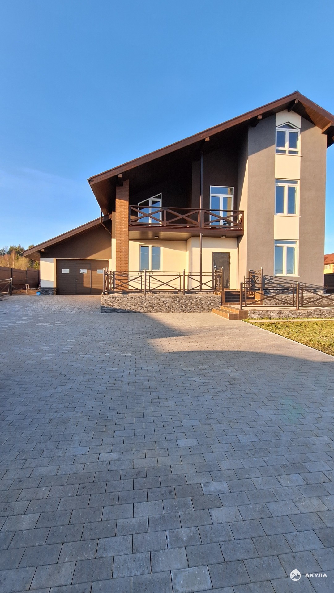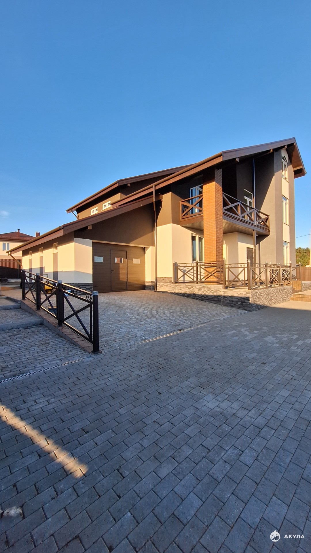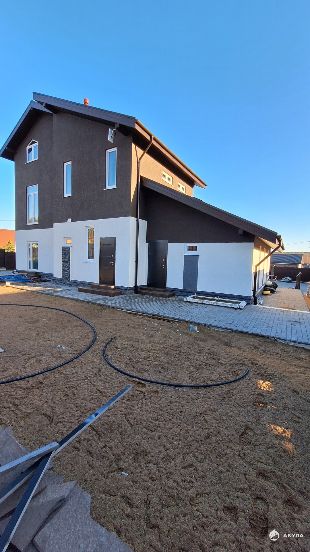 Материал стен - пенобетон, стеклопакеты с тройным остеклением, гараж с выходом из дома и с улицы с электрическими подьемными воротами. Подогрев полов, санузел полностью оснащен сантехникой, остальные помещения пустые и ждут нового хозяина. Дом новый, продается, впервые. Строился не для перепродажи. Вода подается централизованно из скважины, газ на границе участка, канализация локальная.