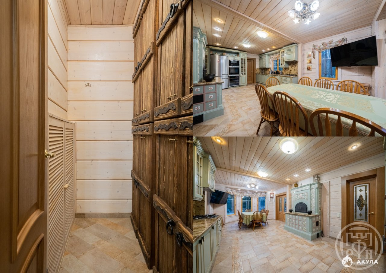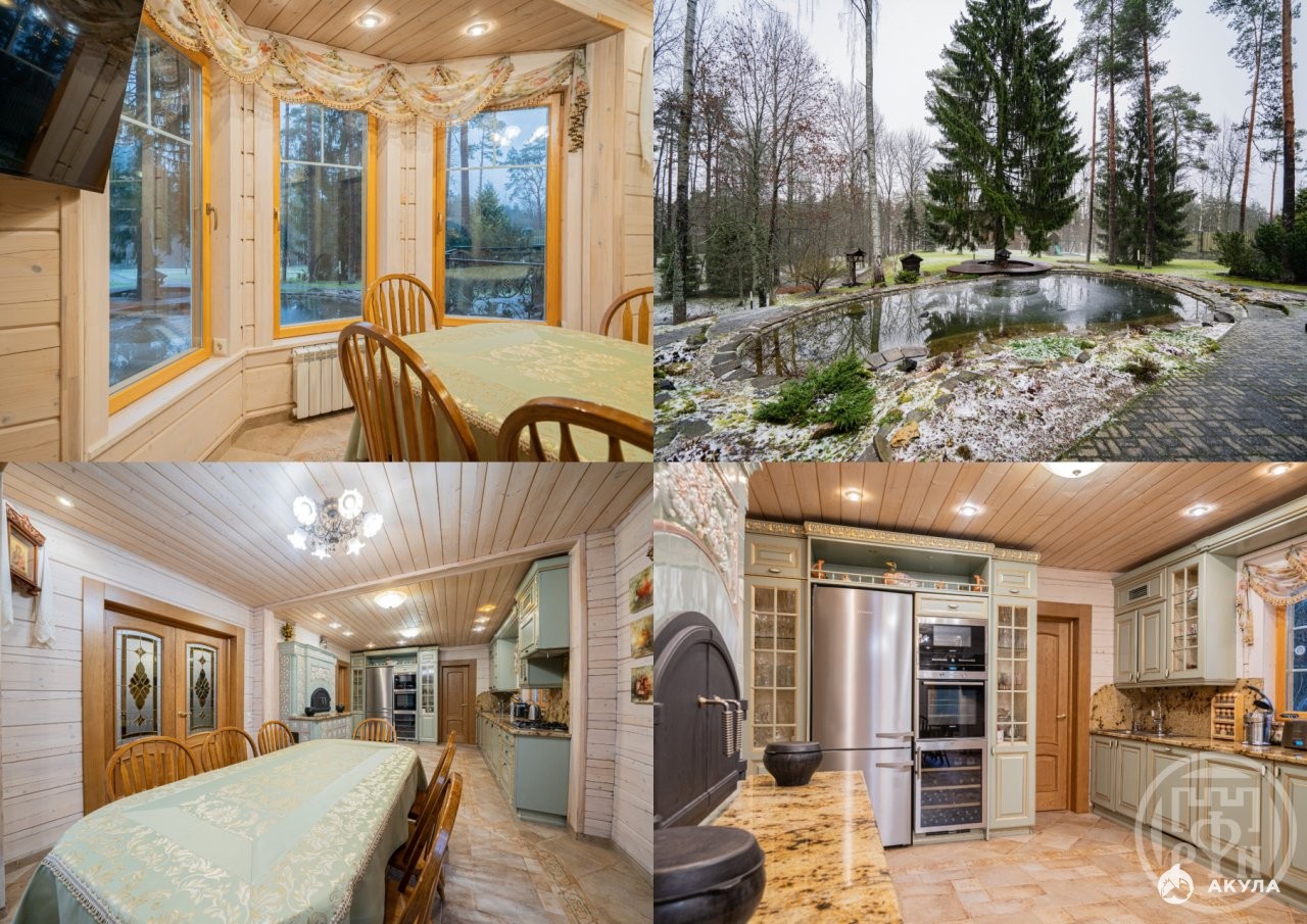 - Жилой дом 250 кв.м.+ терраса 21 кв.м., дом из бруса (200*255) 2001 г.п., а в 2016 году прошел полную реконструкцию, в ходе которой был поднят второй этаж дома для создания более комфортной жилой площади.1этаж: прихожая+ гардеробная, столовая +кладовая, большая гостиная, комната, с/у. 2 этаж: три спальни с выходом на балкон, с/у ванная комната. Дом спроектирован так что, благодаря панорамному остеклению, из гостиной, столовой захватывающий вид на пруд и озеро, а «Второй свет» и высокие потолки создают ощущение пространства и наполняют дом естественным светом. Дом украшает изразцовая печь, дарящая тепло и атмосферу уюта, а также служащая для готовки.