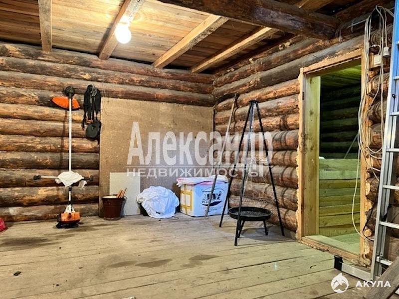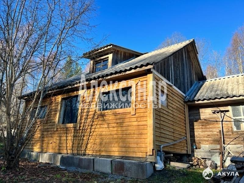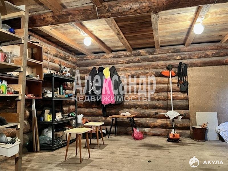 На участке - бревенчатый садовый дом, частично недостроенный. Площадь дома 30кв.м. Фундамент - лента, крыша - шифер.