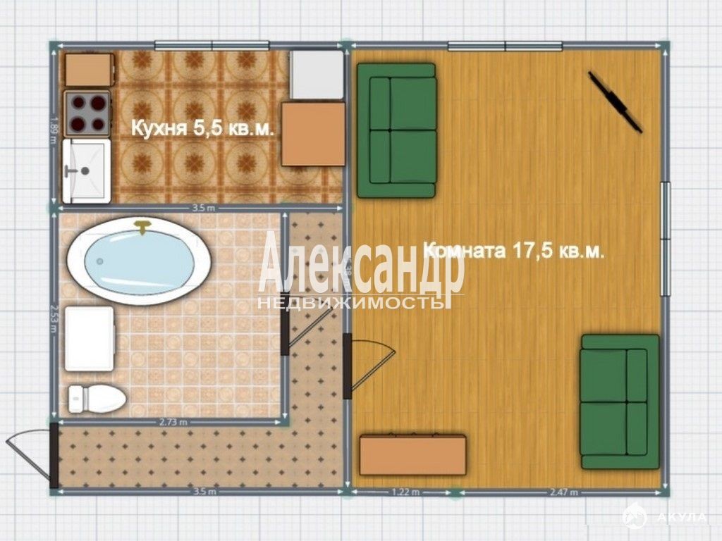 - 17.50 м²
