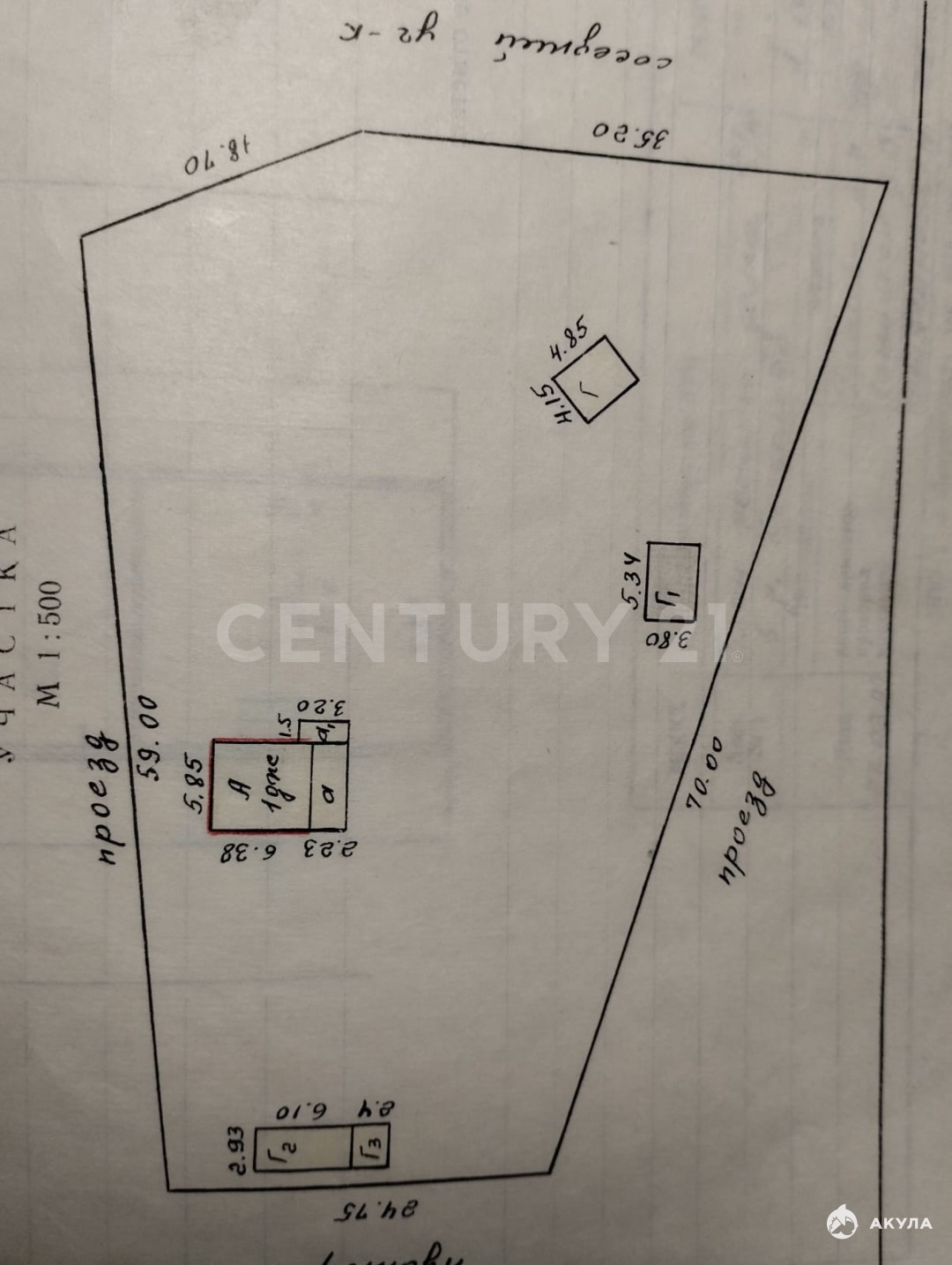 - Площадь участка