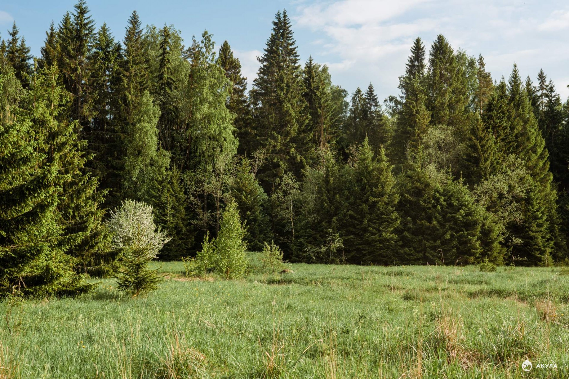 В 30 метрах от участка красивый грибной лес, в 10 мин. езды чистейшее Копанское озеро и Финский залив.