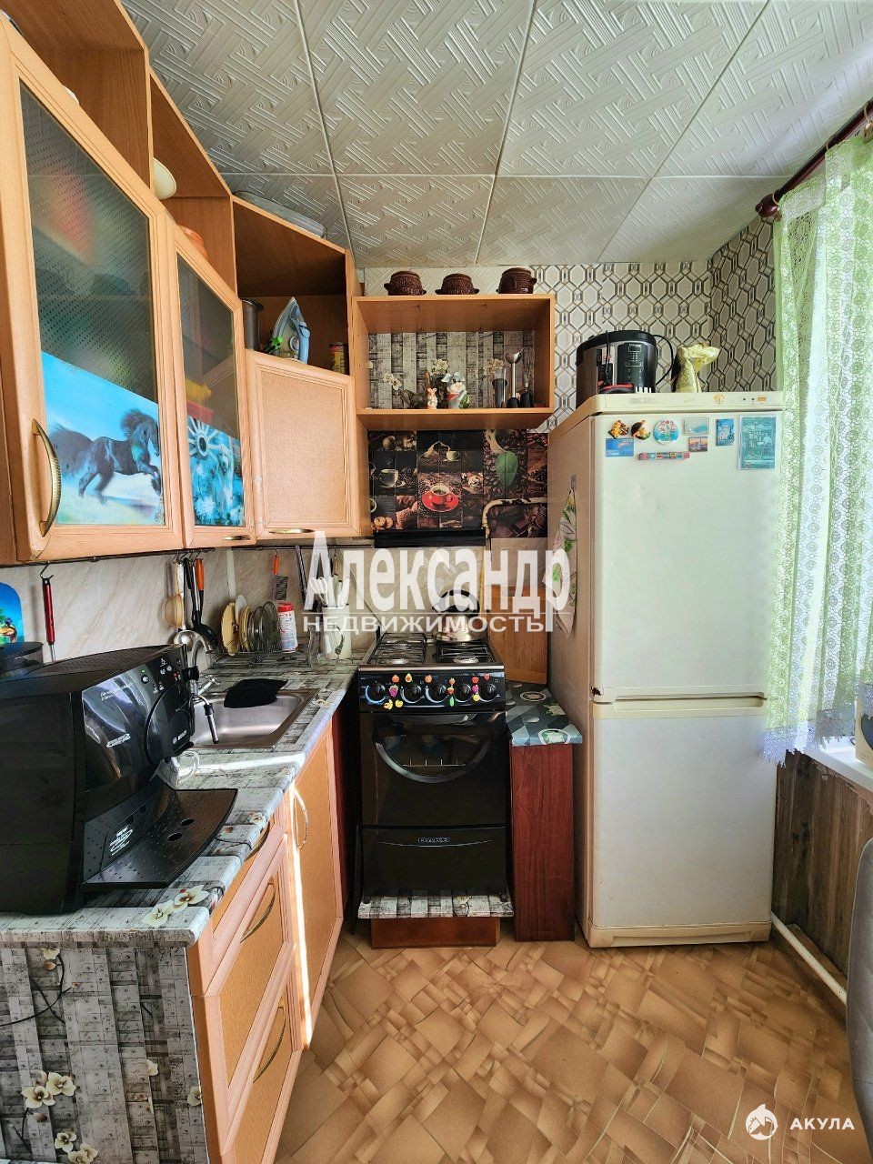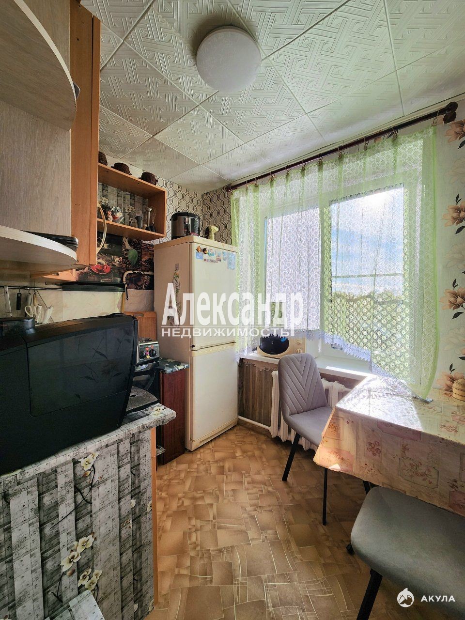 Расположена по адресу: г. Кириши, ул. Мира д. 10, на 5/5 этаже, без балкона.