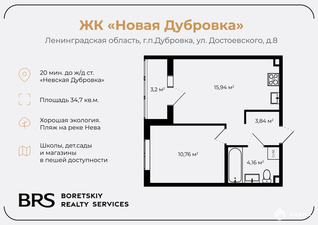 Арт. 63250868. В продаже 1-комнатная квартира в ЖК Новая Дубровка.