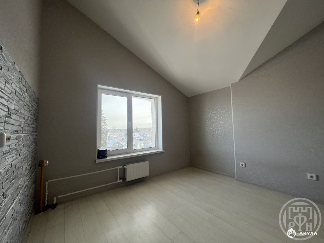 Абсолютно новый ремонт, стеклопакеты, на полу линолеум, санузлы в кафеле. Квартира двусторонняя, комнаты 13, 5 и 16, 5 кв метров, большая комната с балконом выходит во двор дома. Этаж мансардный, поэтому потолок варьируется от 2 до 4 метров. В квартире никто никогда не жил, никто не зарегистрирован.