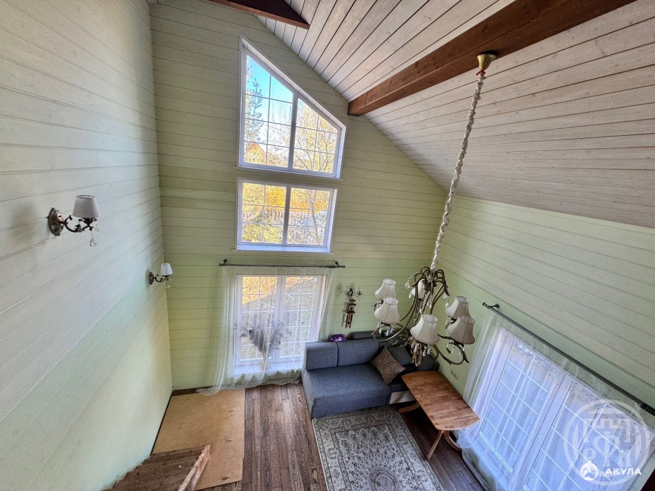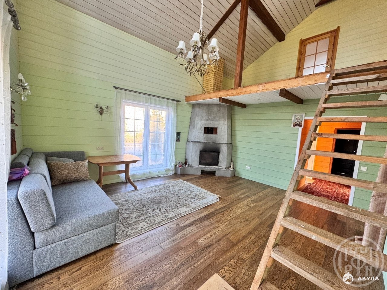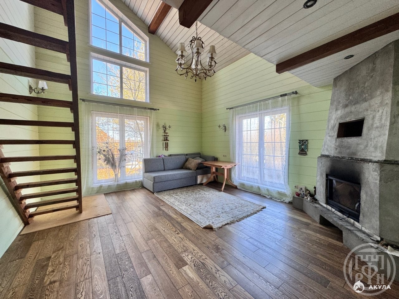 * просторный бревенчатый дом (121, 5 м², 5 комнат) с особой атмосферой — в гостиной устроен двойной свет, который наполняет пространство светом и воздухом;