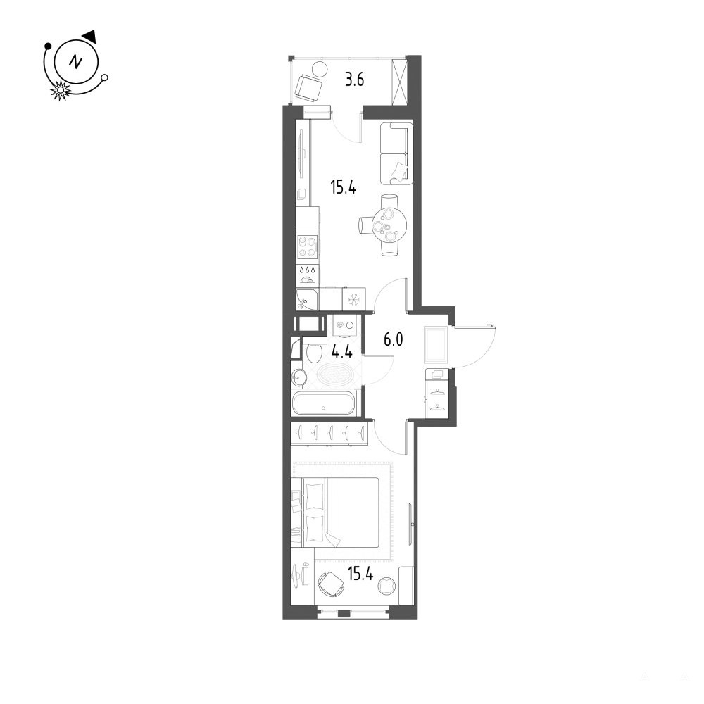 Кухня-гостиная 15, 4м2.