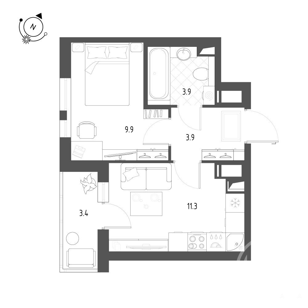 №341245 Продается уютная однокомнатная квартира , где одна полноценная комната + кухня-гостинная, в современном жилом комплексе ЖК Монография . 30м2.