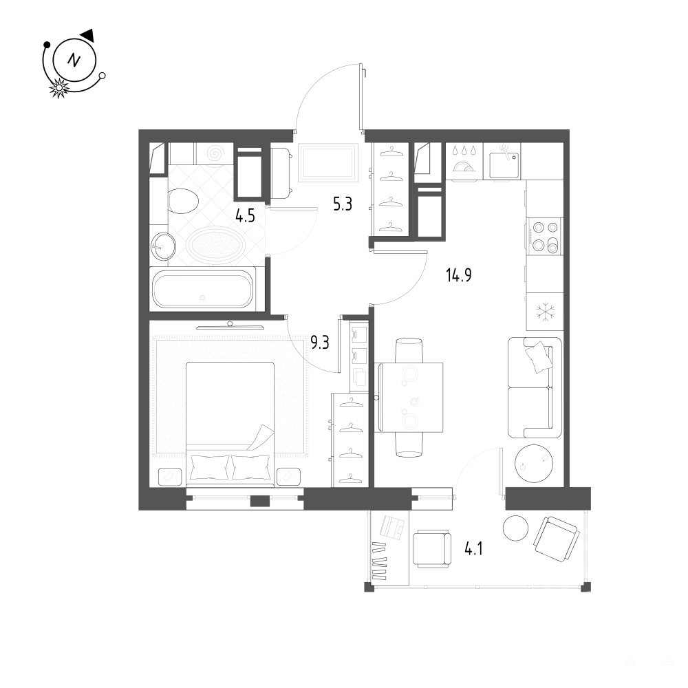 №341586 Продается уютная светлая квартира ( 2Е) , где 1 полноценная комната + кухня-гостинная, в современном жилом комплексе ЖК Монография . 35, 3м2