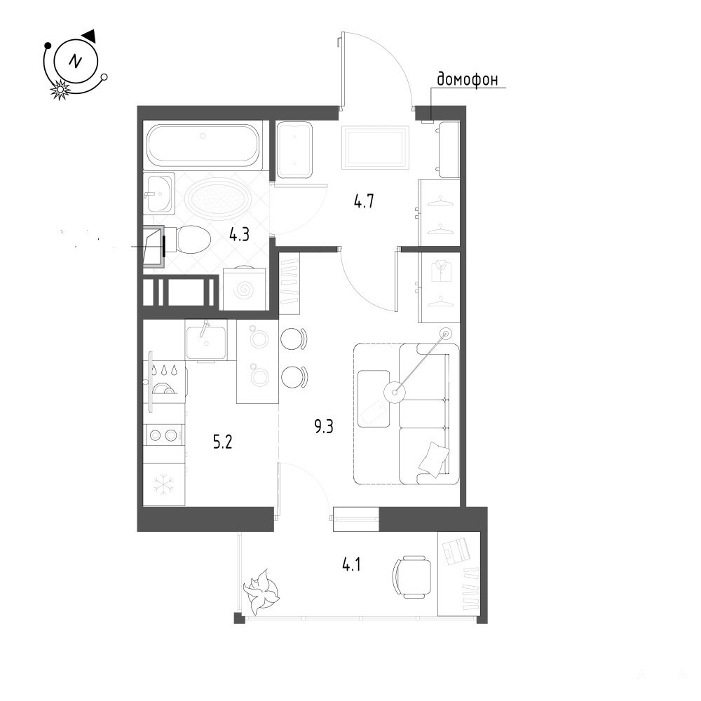 №342023 Продается уютная студия-квартира в современном жилом комплексе ЖК Монография площадью 24, 6 м2.