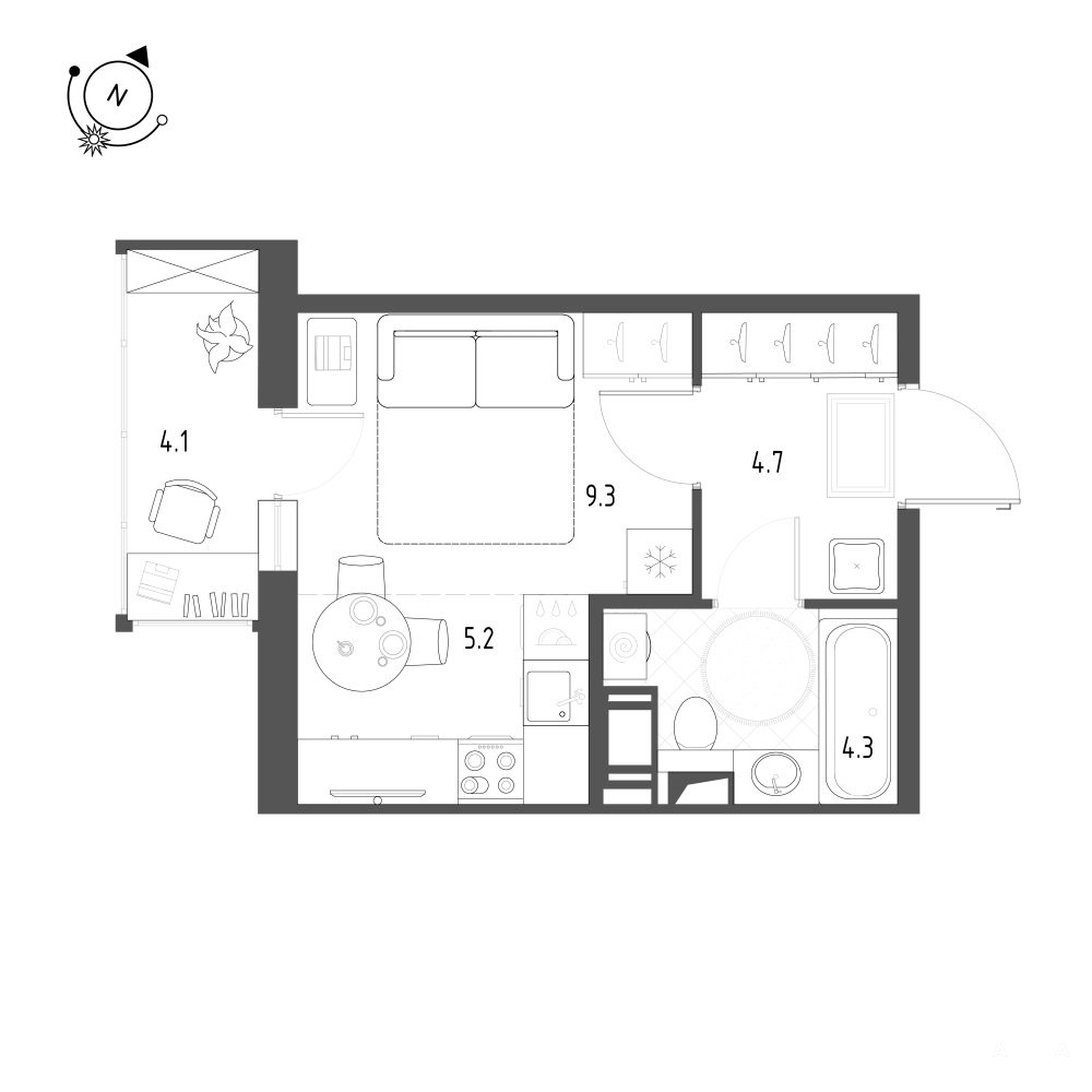 №342050 Продается новая и светлая студия в современном жилом комплексе ЖК Монография, площадь 24, 8 м2.