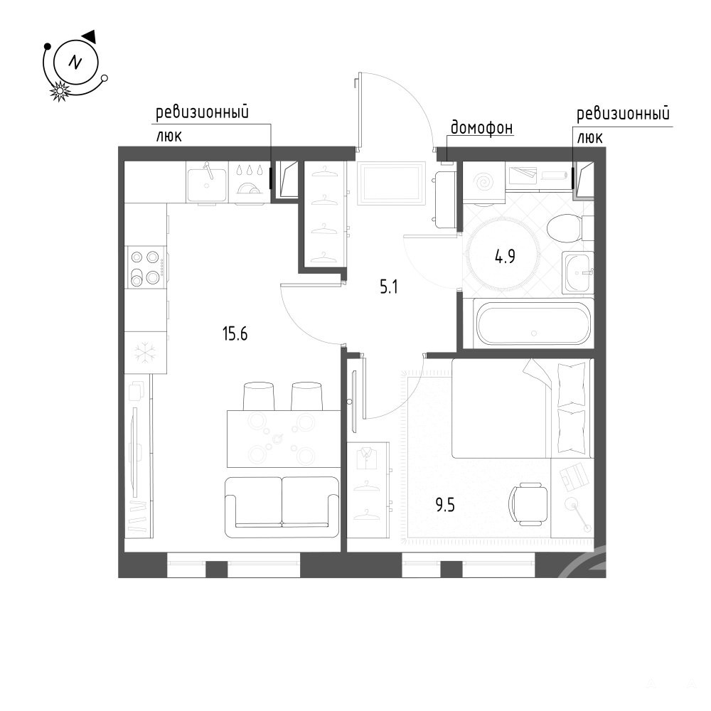 Кухня-гостиная 15, 6м2.
