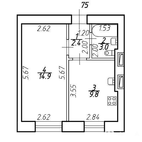 Продается квартира в сданном жилом комплексе на 1 этаже в девятиэтажном кирпичном доме. Общая площадь 30.10 кв. м.