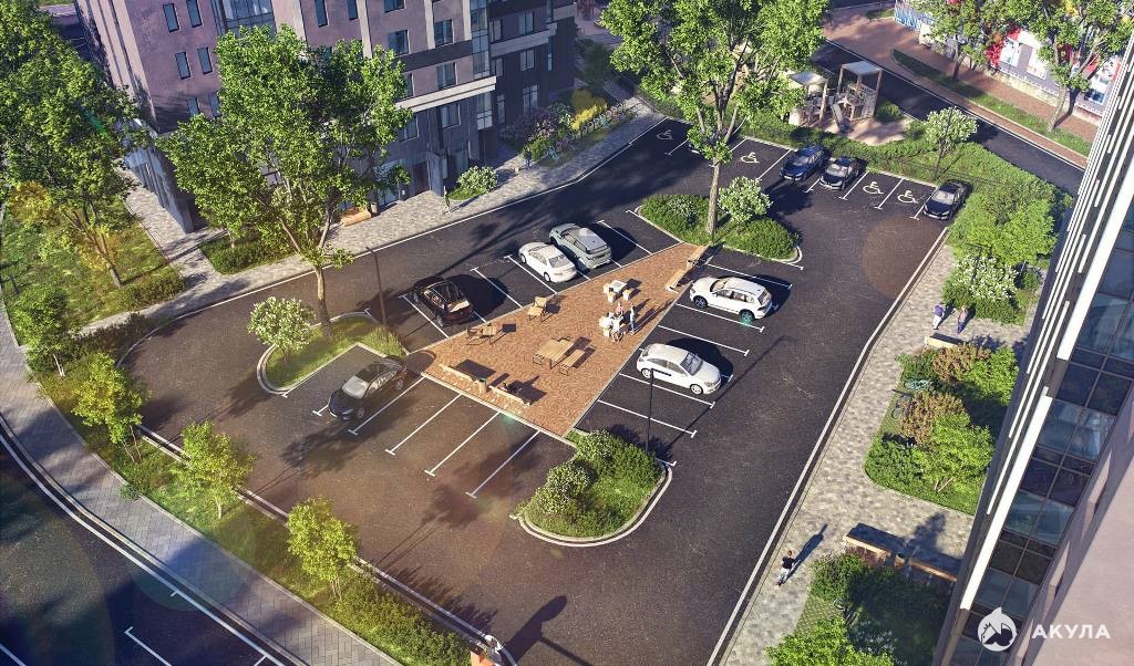 Для благоустройства придомовой территории Simple используется сочетание грамотного ландшафтного и средового дизайна. Большая часть двора украшена круглогодичными зелеными растениями и деревьями, а для отдыха и игр с детьми предусмотрены специальные интерактивные пространства.