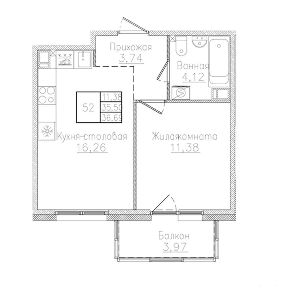 - Площадь кухни
