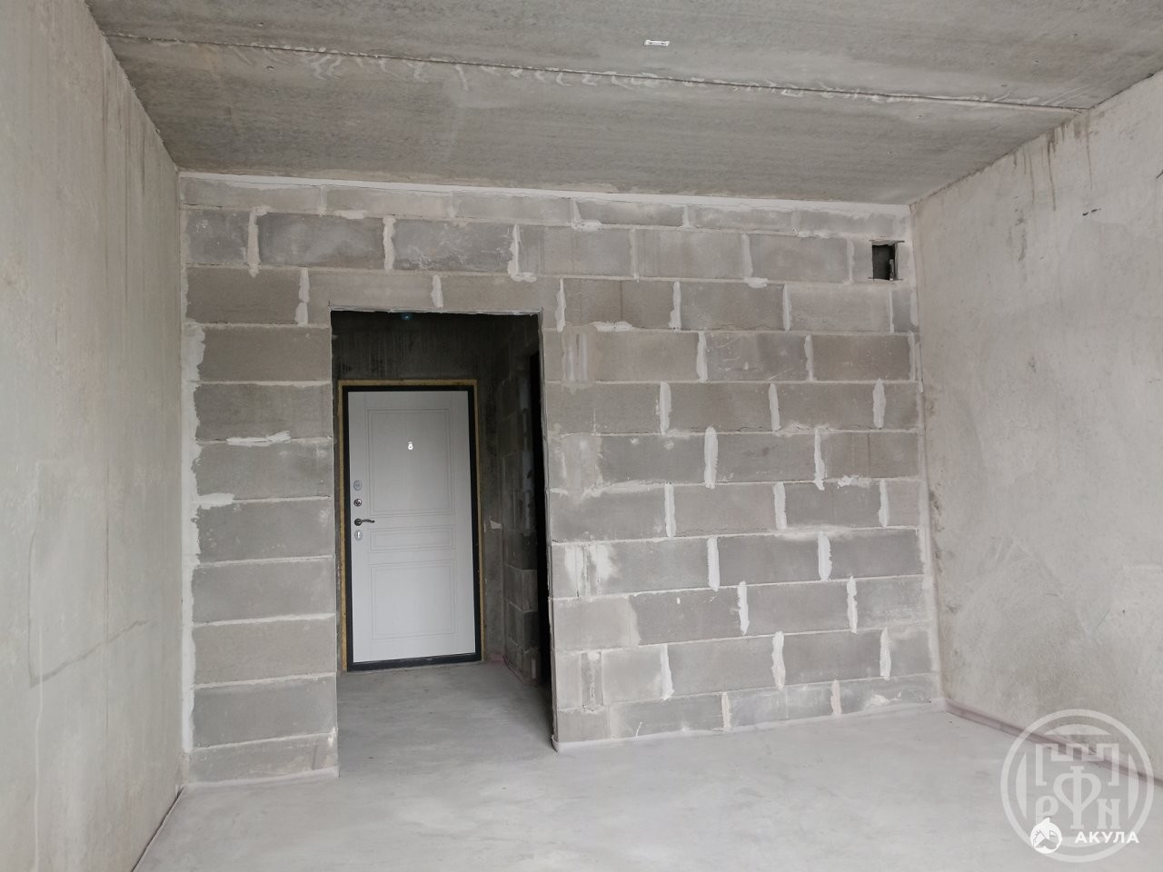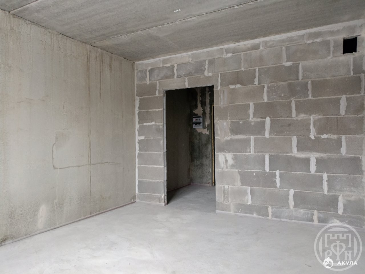 В квартире залита бетонная стяжка пола, в остальном черновая отделка. Счетчики на воду и электричество установлены. Установлен радиатор отопления.