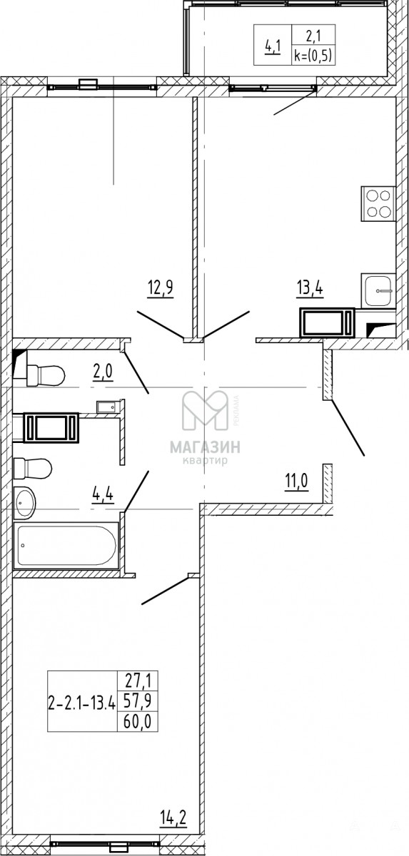 Эта двухкомнатная квартира с изолированной планировкой общей площадью 57, 9 кв. м идеально подойдёт как для жизни, так и для инвестиций.
