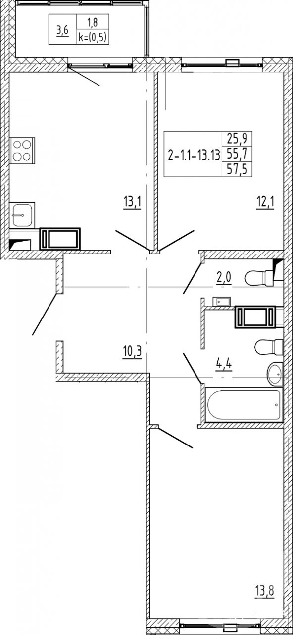 №340809 Продаём отличную двухкомнатную квартиру в новом жилом комплексе в Пушкинском районе.